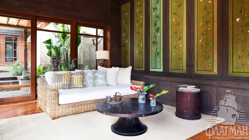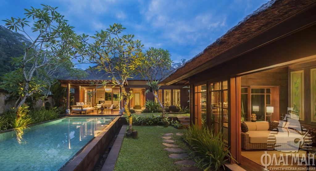 - 1 Mandapa 3-bedroom Pool Villa (2000 м2, 2 спальни с кроватью king size, одна спальня с 2 кроватями twin, сауна, парная, душ на открытом воздухе, гостиная со столовой зоной, кухня, открытый бассейн, макс 7 чел)
