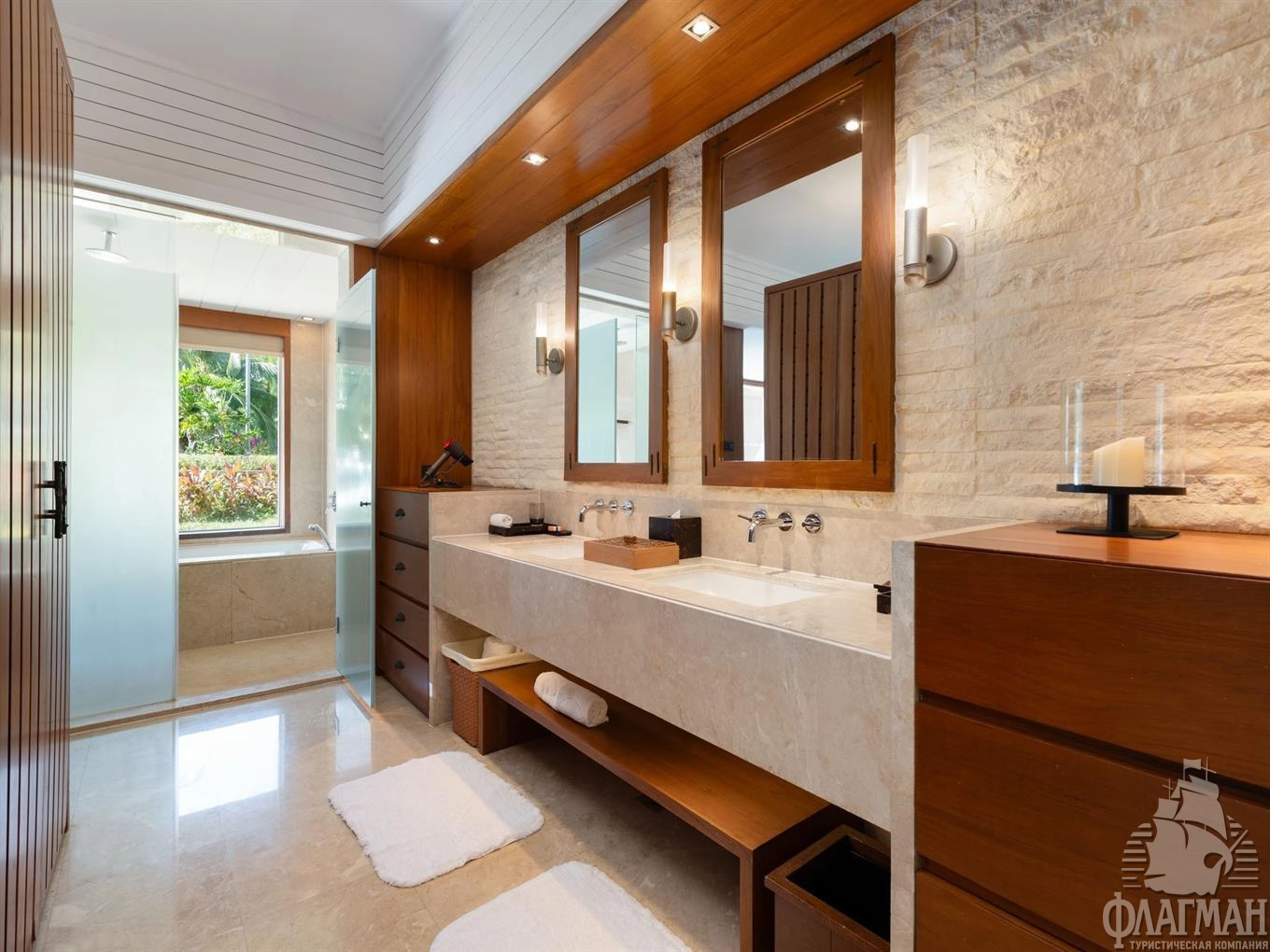 - Ocean breeze pavilion (на 1-2 этажах, 52 кв. м, спальня, кровать King-size, ванная комната, балкон, вид на сад, доп. место: не предоставляется, мини-бар бесплатный в первый день)