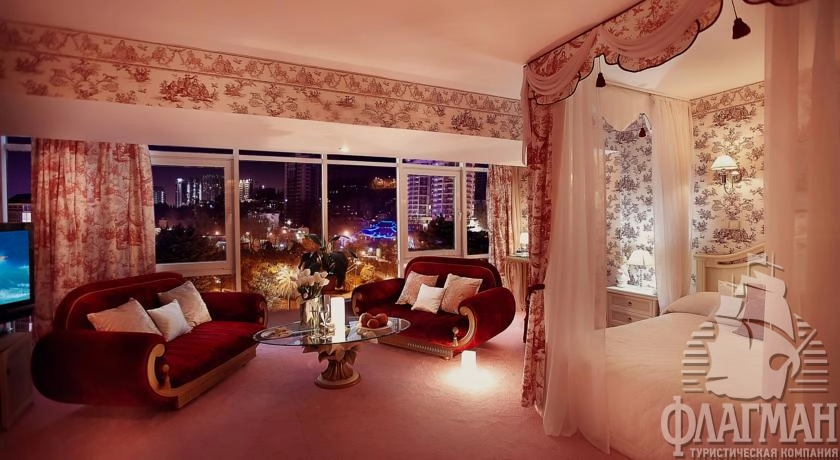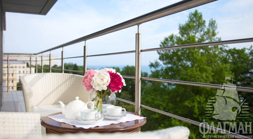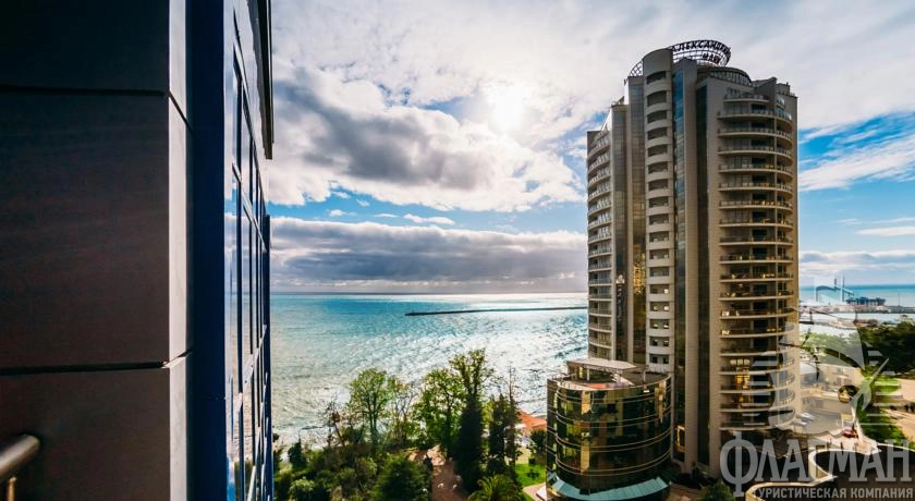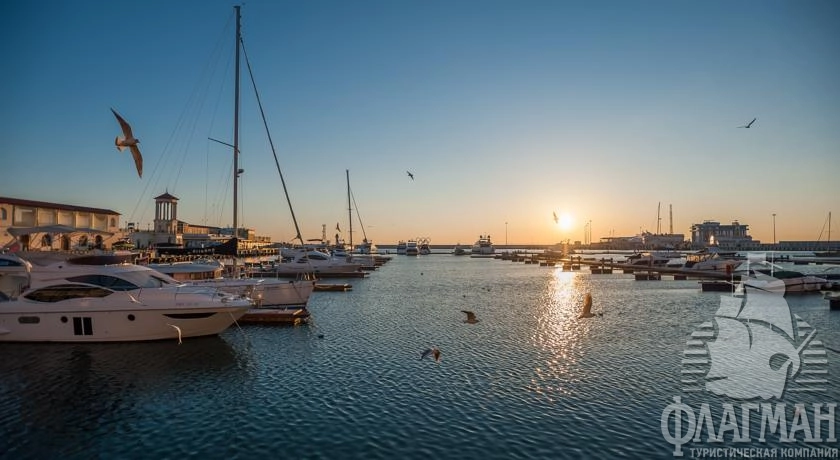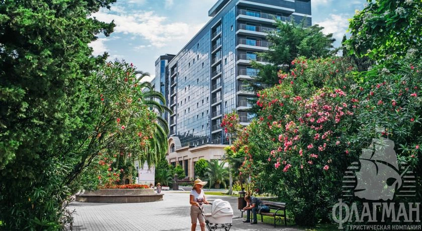 Расположен в самом сердце курорта Сочи, на Приморской набережной, рядом с Художественным музеем, до аэропорта г. Адлер - 26 км, ж/д вокзала г. Сочи - 2 км.