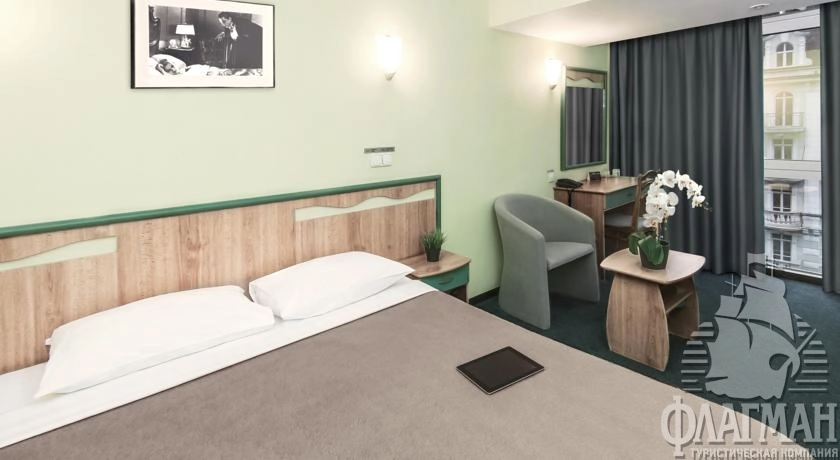 - 2-х местный номер Стандарт 19 кв.м. (с 5-го этажа). В номерах: ванна, туалет, фен, ТВ, мини-бар, кондиционер, телефон.