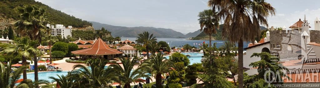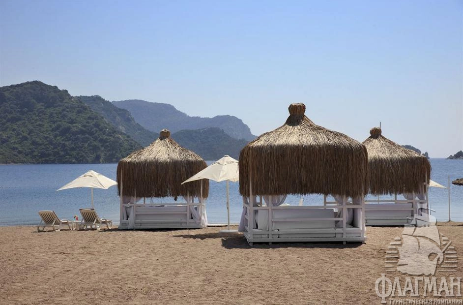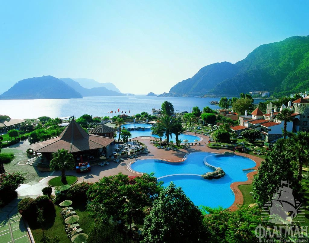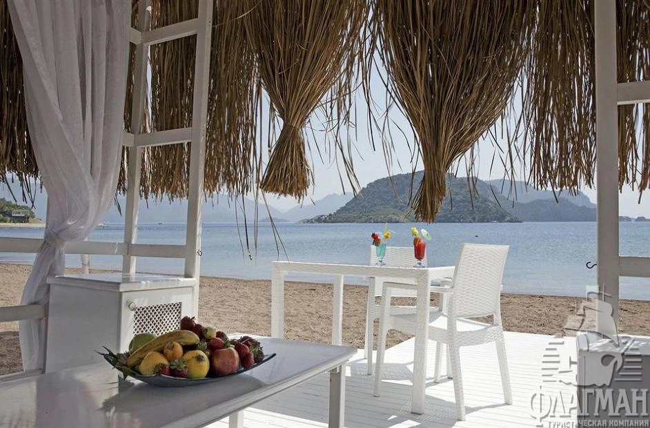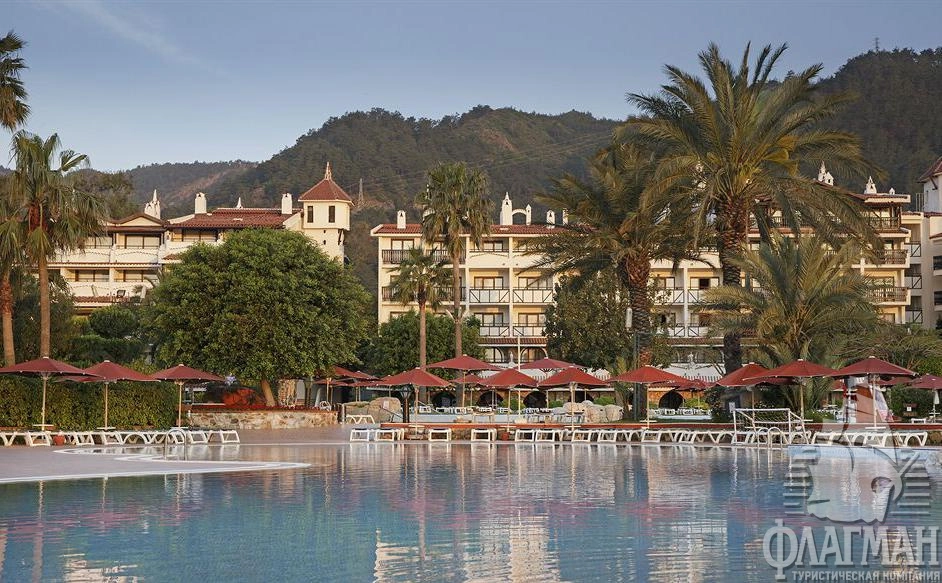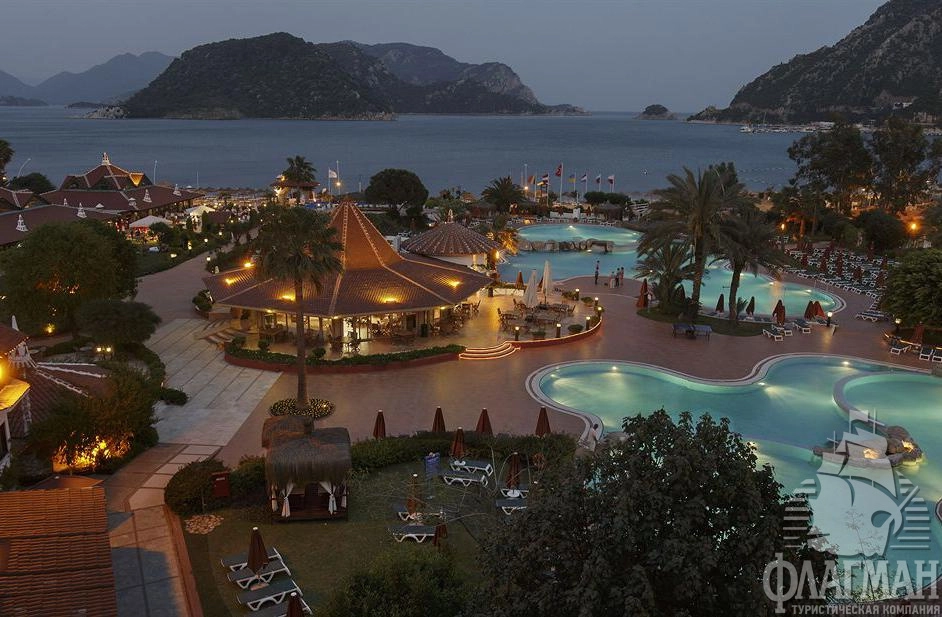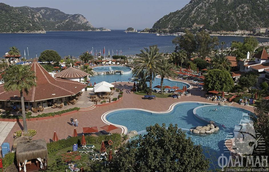 Расположен в 105 км от аэропорта г. Даламан, в 8 км от г. Мармарис, в 1 км от центра поселка Ичмелер, на берегу моря.