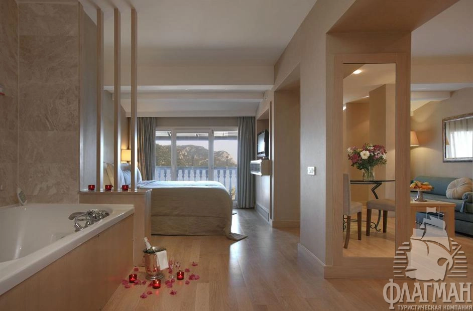 4 двухкомнатных one bedroom suite (с видом на море, гостиная, спальня с дверью, 2 ванные: одна из них с ванной, макс. 3 чел., 58 м2);