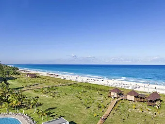 Мелия Интернейшнел 5* – новый современный отель испанской отельной цепочки Melia, открыл для гостей свои двери в феврале 2019 года. Представляет собой роскошный комплекс из центрального одиннадцатиэтажного здания и двух зон: East и West с просторными светлыми номерами. В отеле целый этаж, превращён в настоящий бульвар с разнообразными развлечениями как для семей, так и для взрослых, на территории шесть бассейнов, зоны отдыха для детей и ВИП-персон, спа-центр Yhi Spa и замечательные тропические сады. Гостиница удобно расположена на первой линии шикарного пляжа Варадеро, в 40 минутах езды от международного аэропорта. Гости отеля оценят большой выбор баров и ресторанов с различными кухнями и изысканными напитками. В 5 км от отеля - гольф-клуб, а по вечерам проходят костюмированные преставления в местном кабаре. Рекомендуем для отдыха семей и пар - ценителей хороших пляжей и комфортного отдыха.