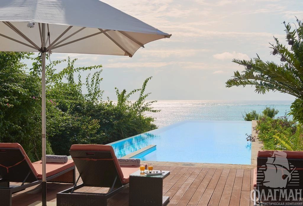 - The Level Romance Ocean Front Pavilion - номера 100 м2 на берегу Индийского океана в домиках под соломенной крышей с видом на океан. Только для взрослых. 1 двуспальная кровать King-size (200 х 200 см). Дополнительное спальное место не предоставляется. Потолочный вентилятор, мини-бар, 2 раковины, банные принадлежности, весы, зонтик, чайные принадлежности. Пользуются пакетом услуг The Level.