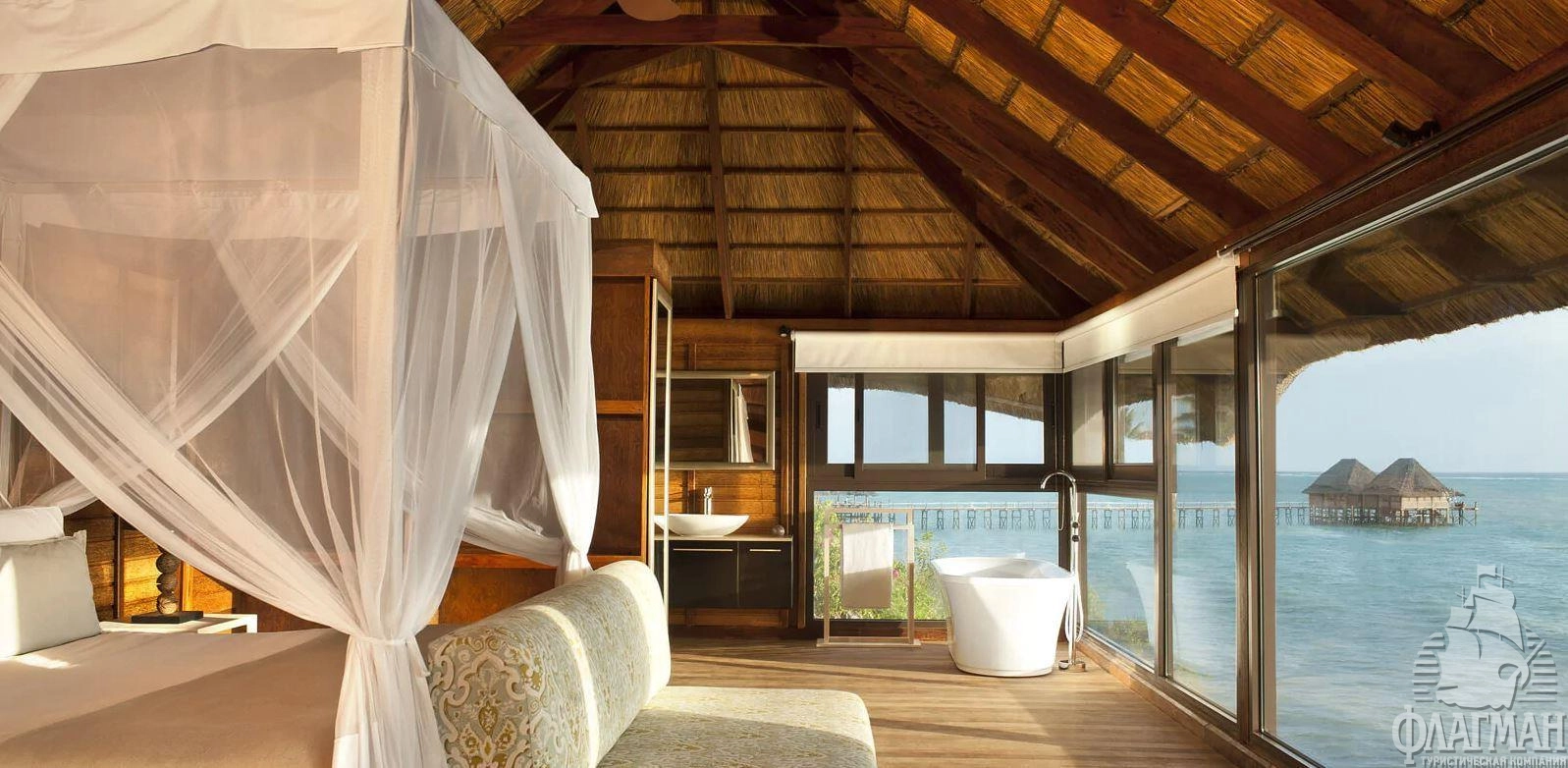 - Zanzibar Suite - двухкомнатные номера 117 м2 на втором этаже с видом на сад/частично на океан. Гостиная с обеденным столом, 2 балкона. 1 двуспальная кровать King-size (200х200 см) в спальне. Душ на открытом воздухе, потолочный вентилятор, мини-бар, 2 раковины, банные принадлежности, весы, зонтик, чайные принадлежности. Пакет услуг "Премиум все включено" и сервис The Level.