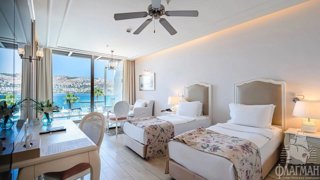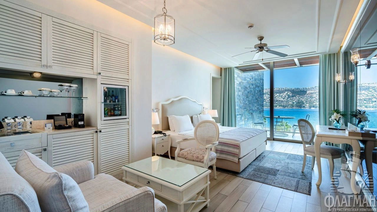 Мивара Лакшери Бодрум 5* это элитный бутик-отель 5* на первой береговой линии в престижном Гюндогане (Бодрум). Современный дизайн (обновлен в 2021 г.) сочетается с исключительным сервисом и приватностью. Гостей ждет собственный песчаный пляж с пирсом, открытый и крытый подогреваемые бассейны, а также роскошный спа-центр с турецкой баней, сауной и массажными кабинетами. Просторные номера (от 37 м²) и люксы (до 125 м²) оформлены в лаконичном стиле, оснащены балконами с видами на море или сад, техникой премиум-класса и ванными комнатами с косметикой Bvlgari. Гастрономия представлена рестораном интернациональной кухни Amanni, японским Minami и лобби-баром с авторскими коктейлями. Для активного отдыха доступны фитнес-центр, водные виды спорта, недалеко и до Ялыкавак Марины (5 км). Ключевые премиум-услуги: консьерж-сервис, трансфер из аэропорта Милас-Бодрум (50 км) и программа лояльности Mivara Club со скидками до 30% на проживание и спа. Идеально для взыскательных путешественников, ценящих уединение, безупречный комфорт и внимание к деталям.