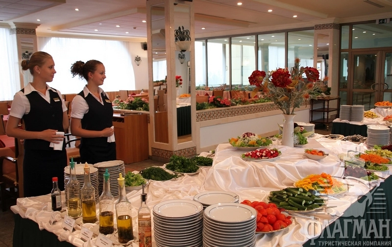 Летний бар "Лагуна" - расположен на пляже. В меню предлагается ассортимент бутербродов и кондитерских изделий, фрукты, мороженое и разнообразные прохладительные напитки, в том числе натуральные свежеприготовленные соки. В коктейльном листе ассортимент безалкогольных и алкогольных коктейлей. Часы работы: ежедневно - 10:00 - 20:00