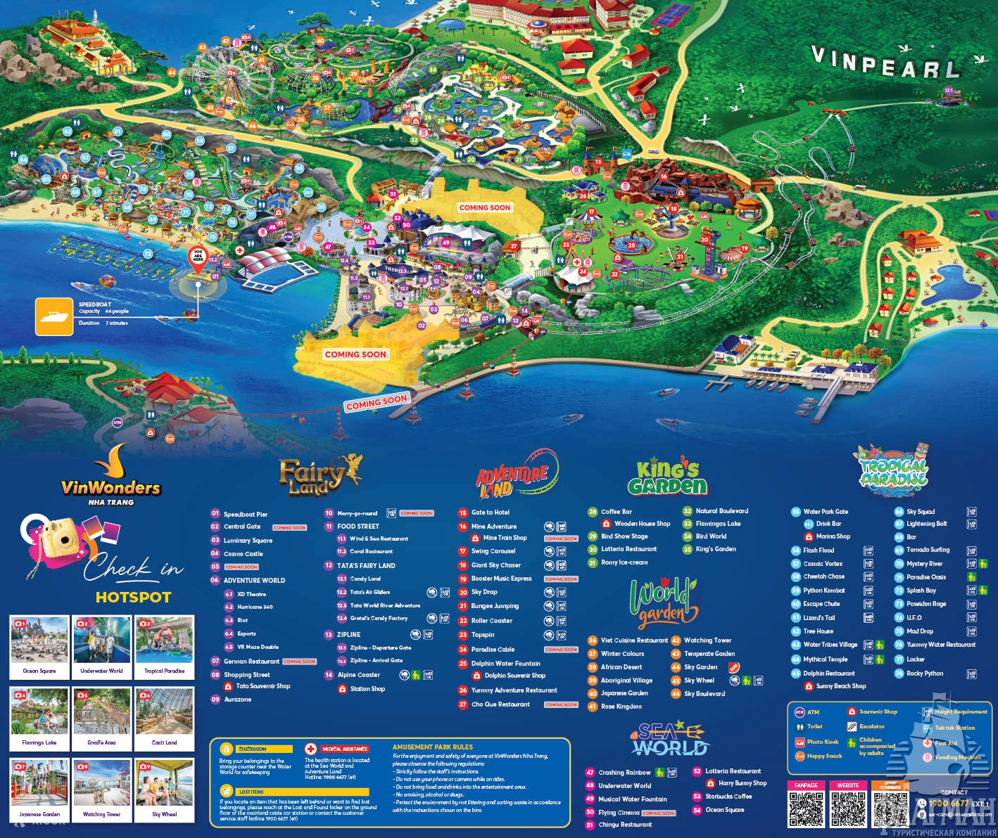 Расположен в уединенной бухте, на берегу острова Хон Че /Hon Tre, в 7 км от города Нячанг (50 мин езды (катер/канатная дорога+авто), в 40 км от аэропорта Камрань/Cam Ranh (1 час езды, авто+/катер).