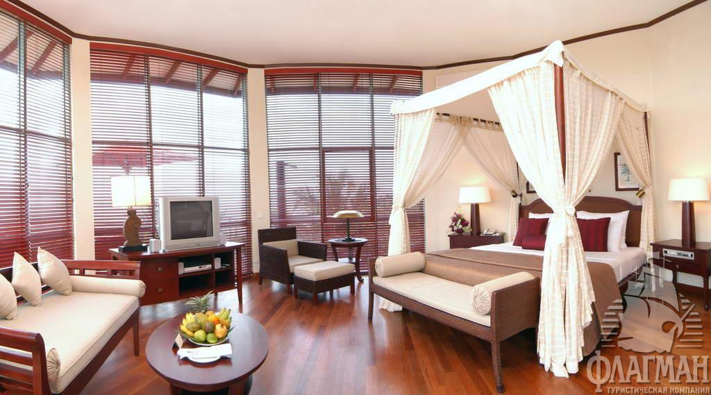 - 16 Paradise Room (43 м2, макс. 2 или 2+2 чел.). Однокомнатные номера, расположенные на 3 этаже: двуспальная кровать, ванная комната с ванной и душем, балкон. В этой категории номера не устанавливаются кроватки для детей (baby cot).