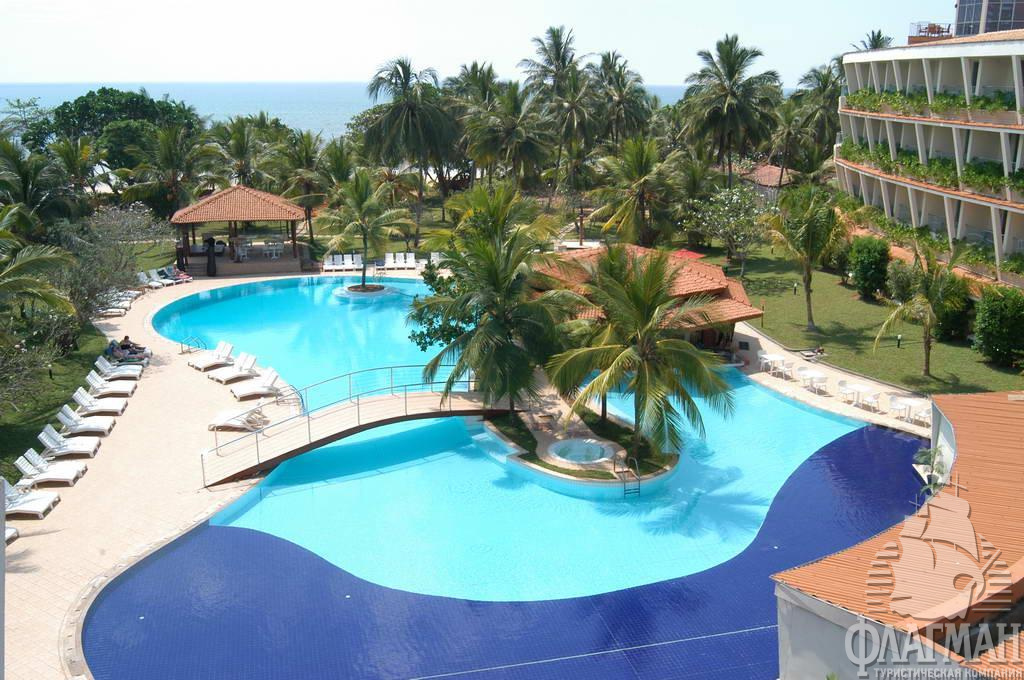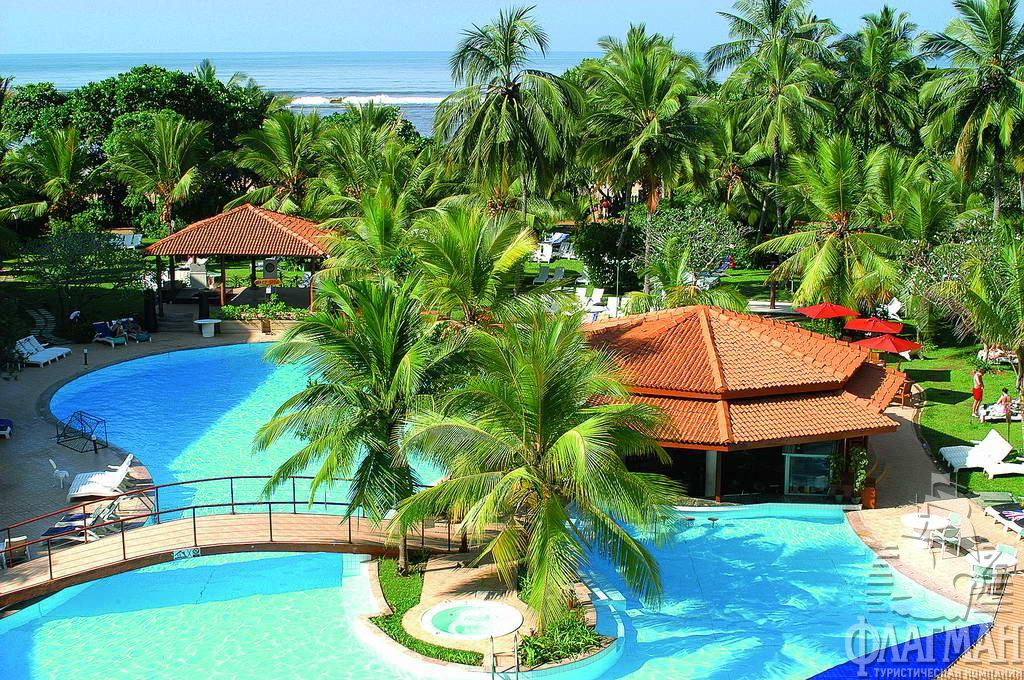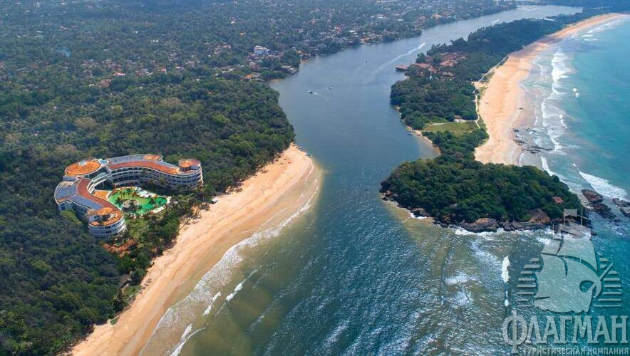 В местечке Берувелла, в 60 км от Коломбо, в 92 км от аэропорта, в районе «Золотой мили». Трансфер из аэропорта: около 3 часов.
