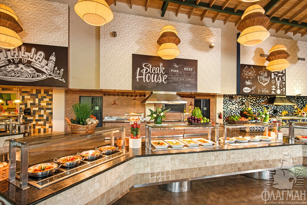 - рестораны: 2 (основной ресторан (шведский стол); снек-ресторан на пляже)