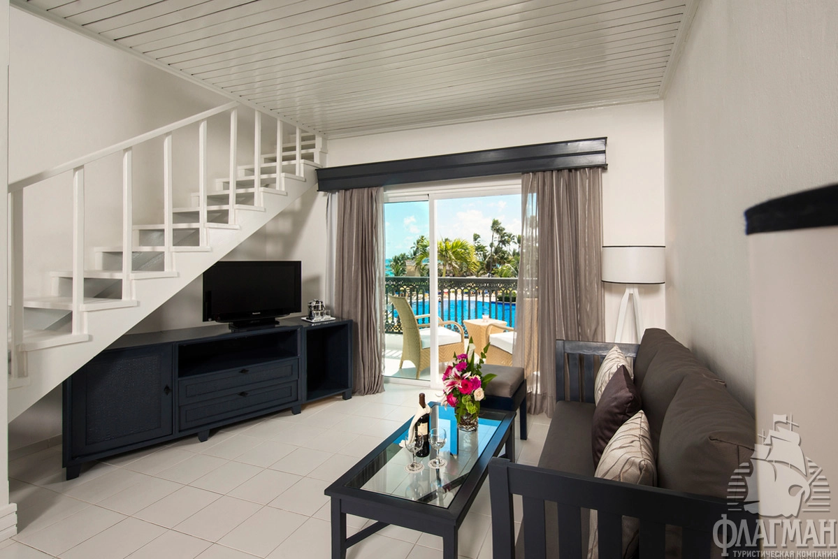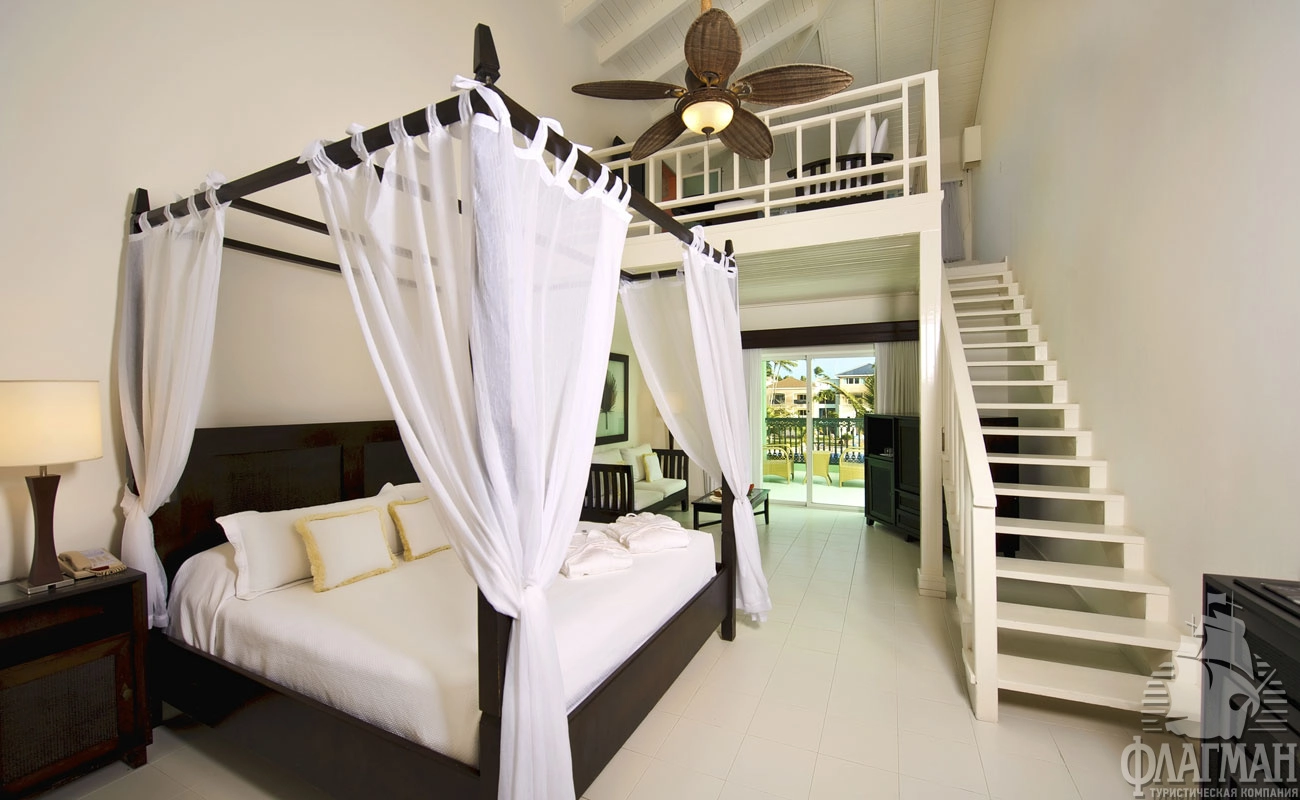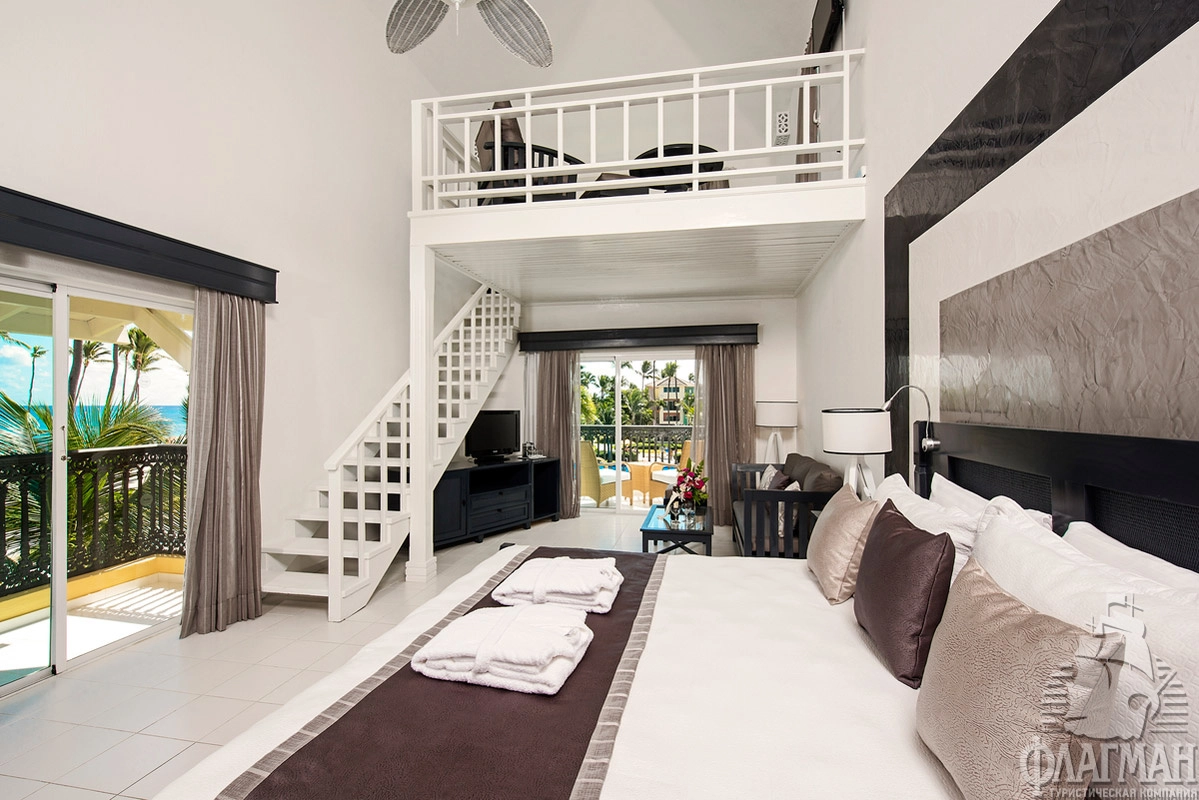 12 Honeymoon Suite (белый интерьер, двухуровневый номер: спальня на 1 этаже и гостиная на втором этаже, терраса на 2 этаже, привилегии Privilege, 122,98 м2, несколько номеров с видом на море Honeymoon Suite Ocean View).