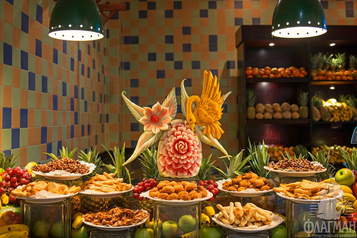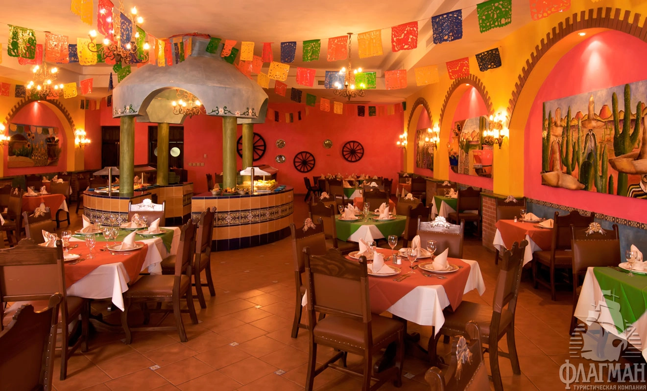 - рестораны a la carte: 7 (доминиканский, мексиканский, итальянский, американский, карибский гриль, морепродукты – за доплату, испанский с винным погребом – некоторые блюда за доплату)