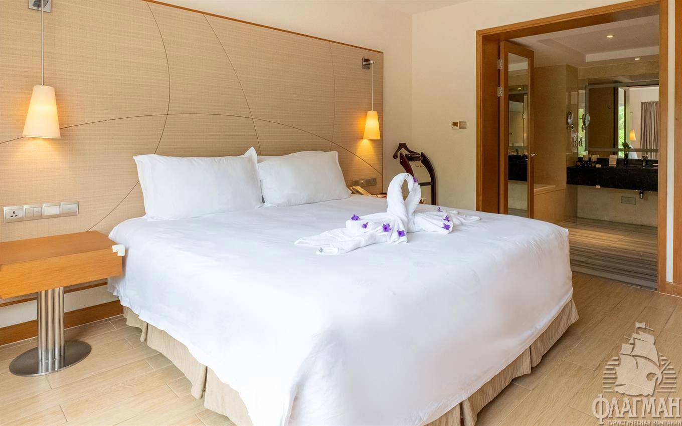 - Deluxe sea view room (на 5-9 этажах, 30-35 кв. м, спальня, кровать King-size или 2 односпальные кровати, ванная комната, вид на море, доп. место матрас 110х183 см.);
