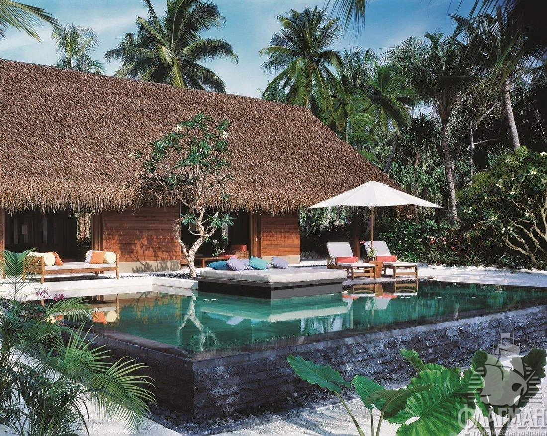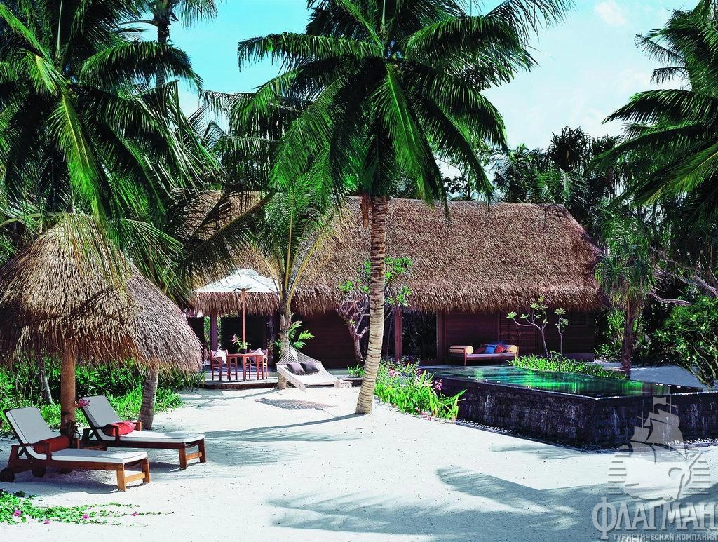 6 Duplex Beach Villa with Pool (300 м² (135 м² и 165 м²), макс. 6 или 4+4 чел.). Идеальный вариант для размещения семей с детьми. Вилла состоит из двух номеров (Beach Villa и Beach Villa with Pool), расположенных в пяти метрах друг от друга. В одном номере – кровать king-size; в другом – 2 кровати queen, бассейн (23 м²). В каждом из двух номеров: душ на открытом воздухе и веранда.