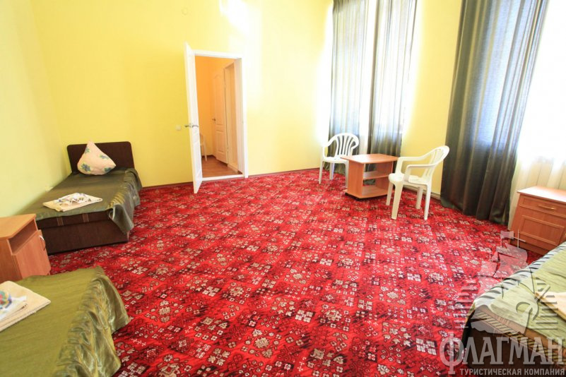 - 2-местные 2-комнатные номера 1 категории (макс. 2 чел., 35 кв. м, туалет, умывальник, ванна, телевизор, холодильник, телефон, балкон).