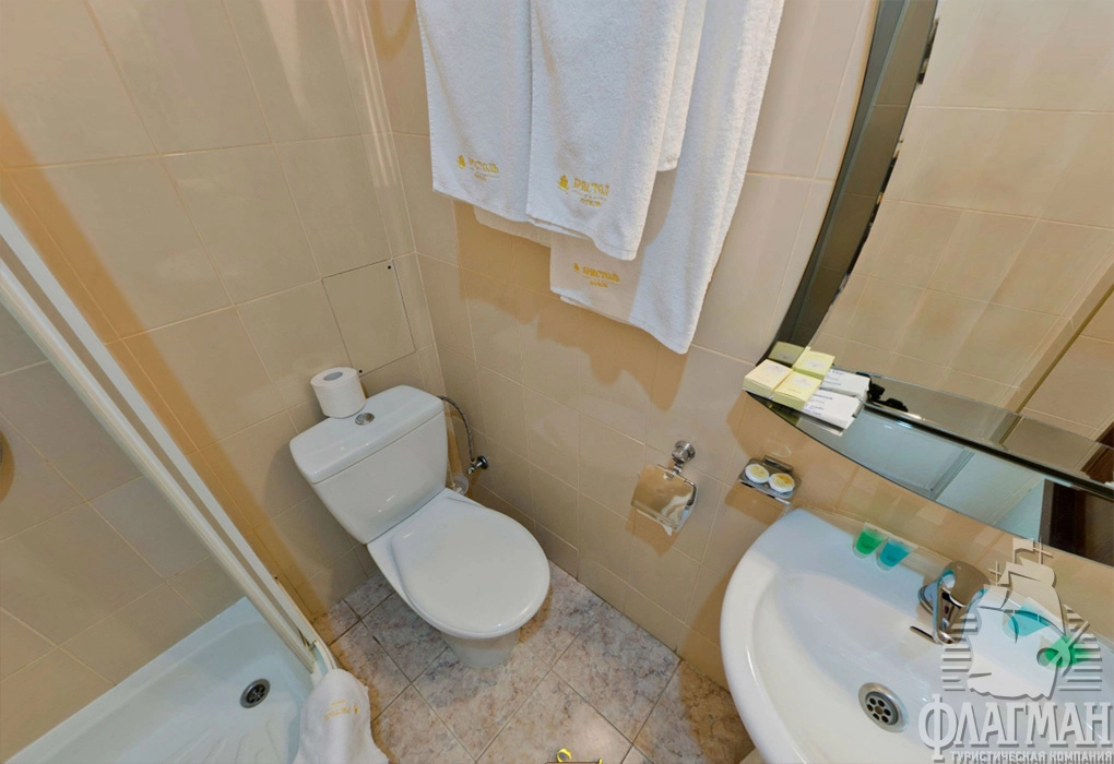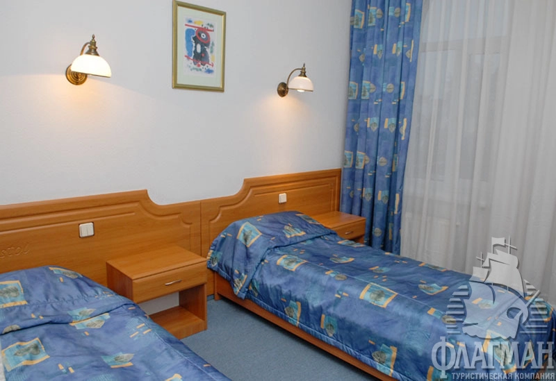 - 2-местный стандартный номер (макс. 2+1 чел., 17-26 кв. м, телевизор, кондиционер, душ, туалет, фен, холодильник, балкон, сейф, северная/южная сторона). Доп. место - еврораскладушка, может быть установлена без ограничения по возрасту.