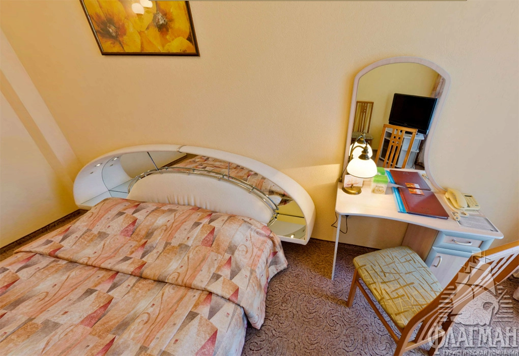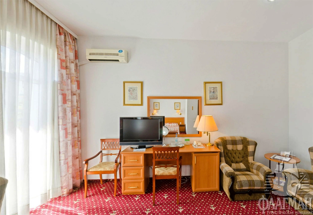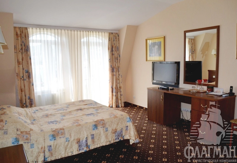 - 2-местный 1-комнатный бизнес номер (макс. 2+1 чел., 28-30 кв. м, телевизор, кондиционер, душ, туалет, фен, холодильник, лоджия, сейф, южная сторона). Доп. место - еврораскладушка, может быть установлена без ограничения по возрасту.