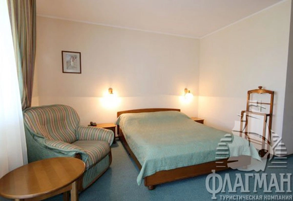- 1-местный стандартный номер (макс. 1+1 чел., 20 кв. м, телевизор, кондиционер, душ, туалет, холодильник, лоджия, телефон, 1,5-спальная кровать). Доп. место - диван, может быть установлен без ограничения по возрасту.