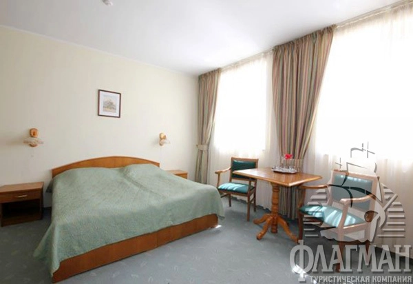 - 2-местный стандартный номер категории Б (макс. 2+1 чел., 24 кв. м, телевизор, кондиционер, душ/ ванна, туалет, холодильник, балкон, телефон, 1,5-спальные кровати). Доп. место - кровать/раскладушка, может быть установлена без ограничения по возрасту.