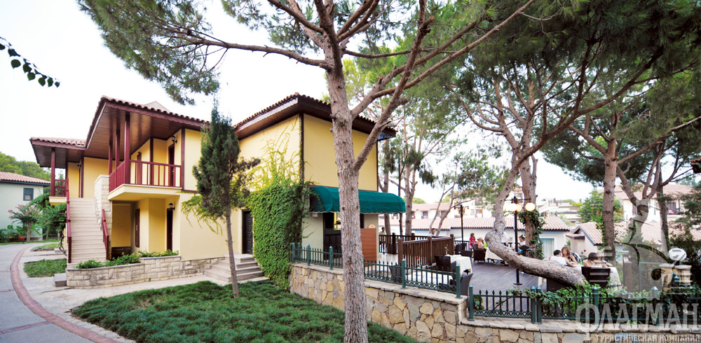 расположен в 35 км от аэропорта и в 45 км от центра Антальи, в 700 м от поселка Белек, на берегу моря.