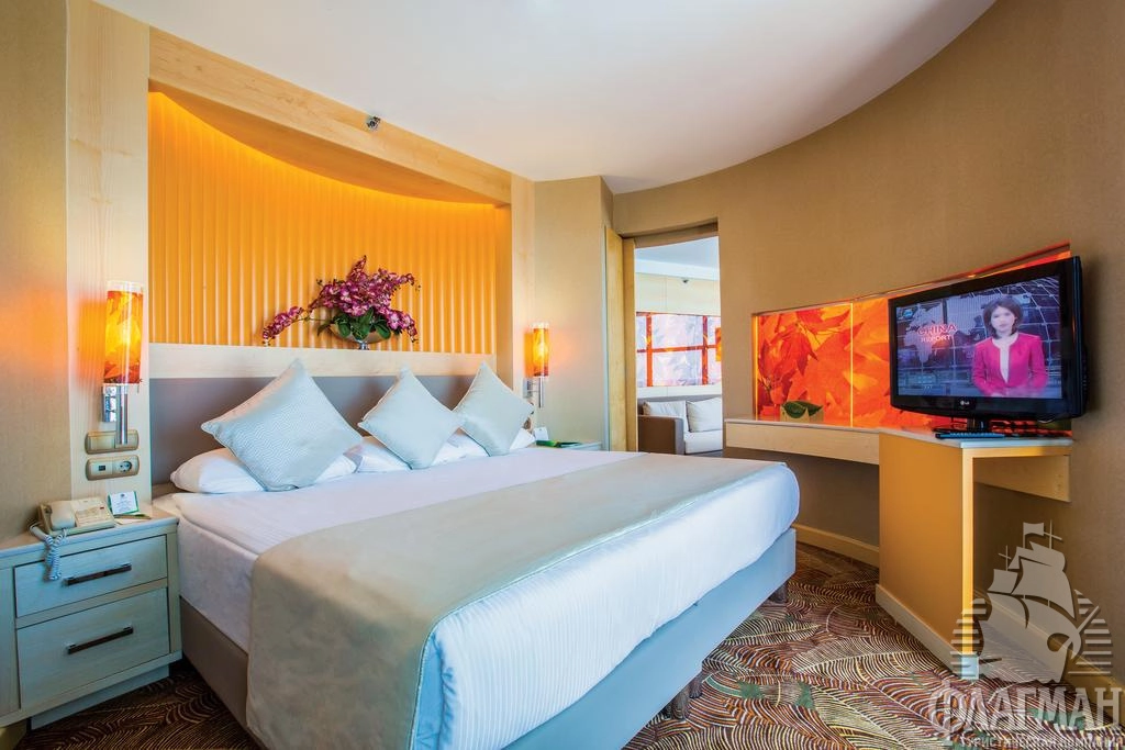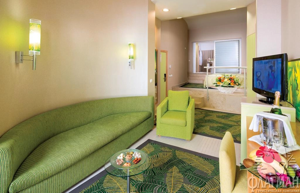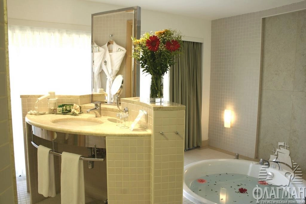 2 двухкомнатных grand deluxe suite (вид на море, гостиная, спальня с дверью, ванная с ванной и душем, джакузи на террасе, 2 ТВ, 2 террасы, ежедневно фрукты, шампанское и цветы в номере, полный мини-бар, включая местные и импортные напитки, услуги прачечной – бесплатно, макс. 4 чел., 120 м2).