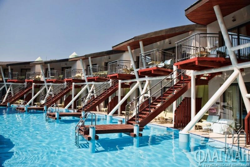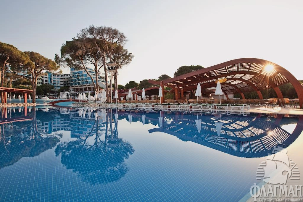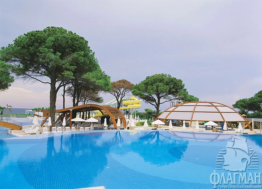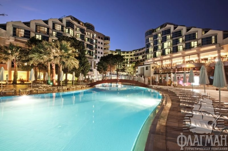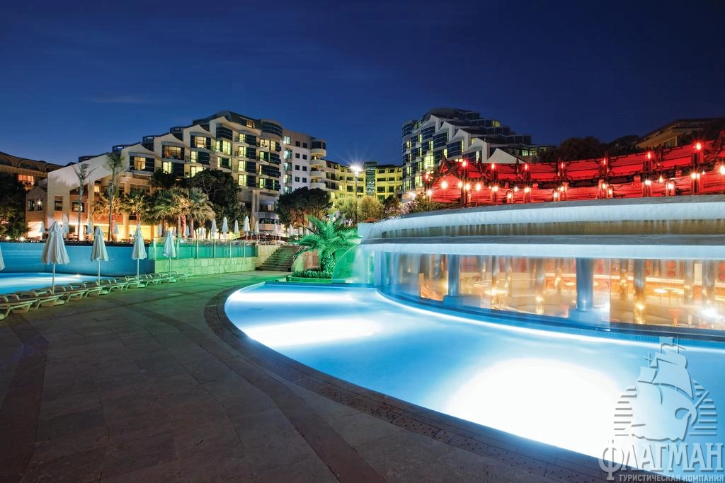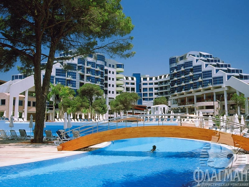 Расположен в 35 км от аэропорта и в 45 км от центра г. Анталья, в 4 км от г. Белек, на берегу моря.