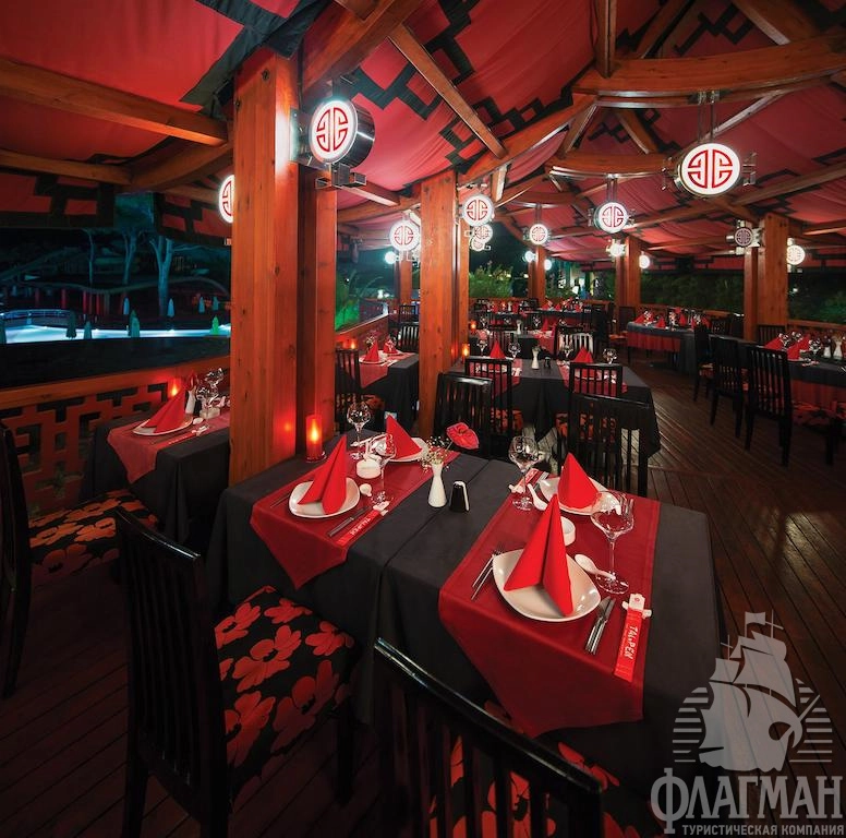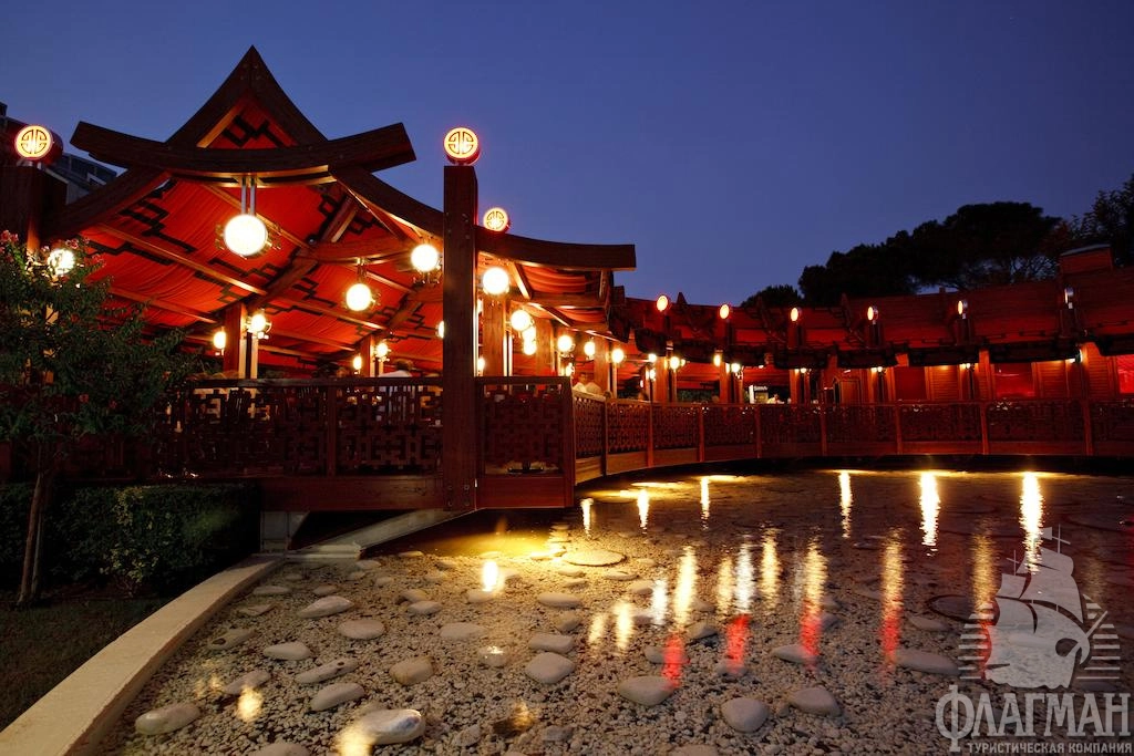 - рестораны a la carte: 5 (итальянский, турецкий, французский, средиземноморский, дальневосточный – плата за резервацию)