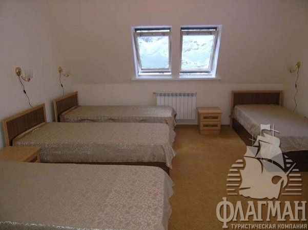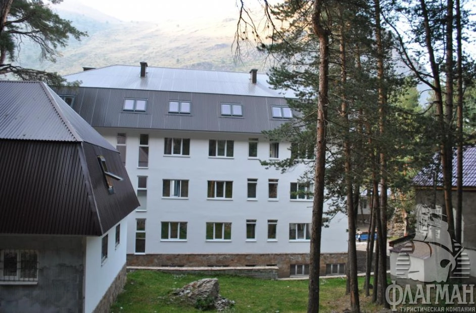 Пансионат Эльбрус 3* состоит из двух 4-этажных корпусов, объединенных переходом. В 50 метрах от отеля расположен склон для катания с бугельной трассой, освещаемый ночью. К услугам гостей: ресторан, кальян-бар, диско-бар, спортзалы для занятий спортом и проведений соревнований, конференц-зал, сауна и бильярд. Рекомендуем для активного отдыха.
