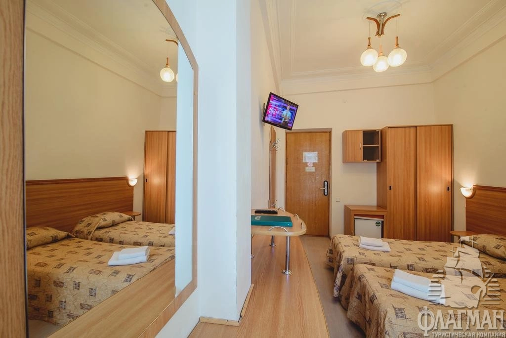 Корпус (4 этажа, 500 м до пляжа): 2-местные стандартные номера, 2-местные 2-комнатные стандартные номера.