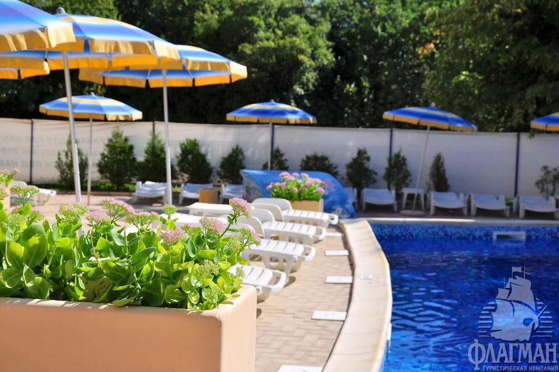 - у бассейна зонтики, шезлонги: бесплатно