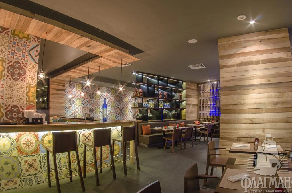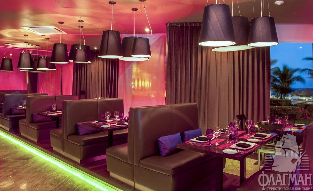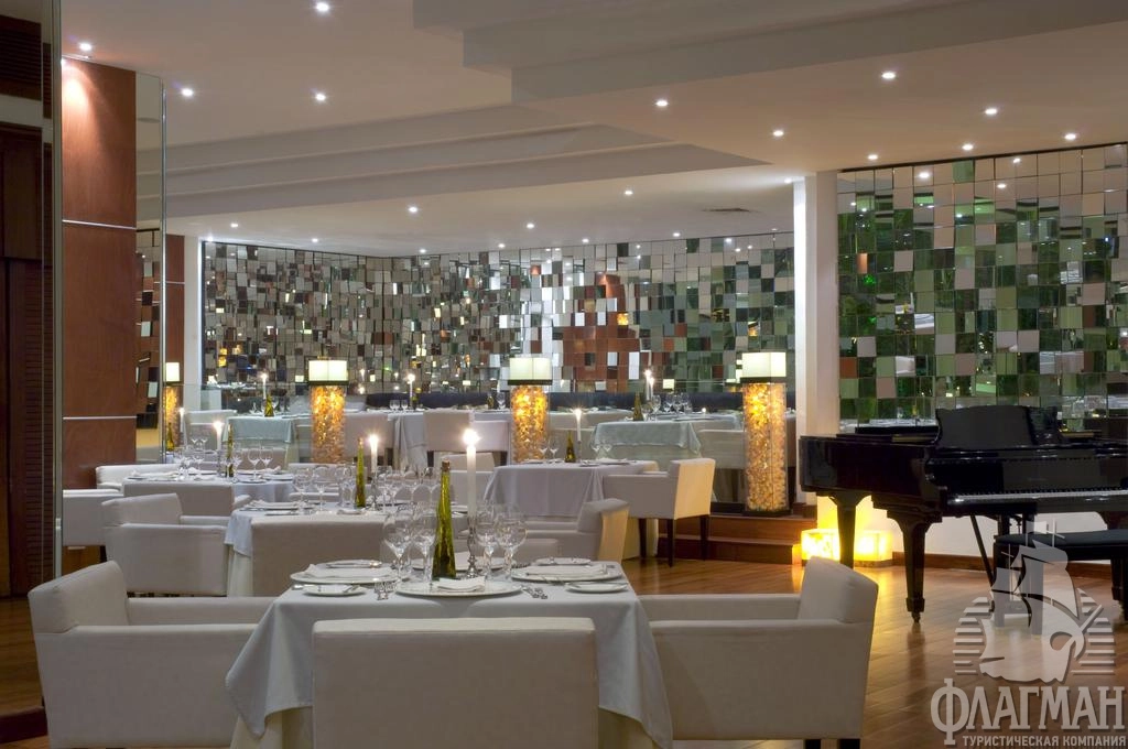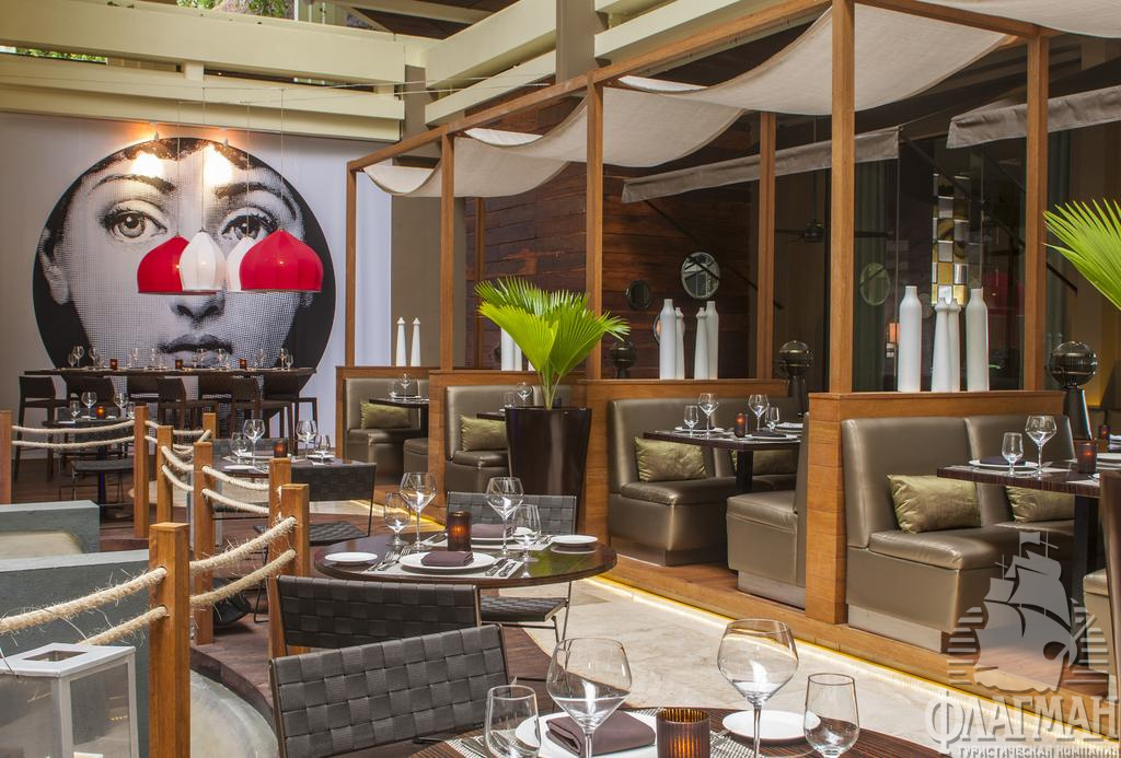 - 9 ресторанов (Naos – ресторан-буфет международной кухни; Fuego – фьюжн; Vento – итальянский; Tempo – средиземноморский, кухня от шеф-повара Mартина Берасатеги – обладателя 6 звезд Мишлен; Маrket Grill – итало-аргентинский, гриль; Bana – восточный фьюжн, Mole – современная мексиканская кухня, La Perla – морепродукты, La Polapa – эксклюзивный ресторан Royal Service)