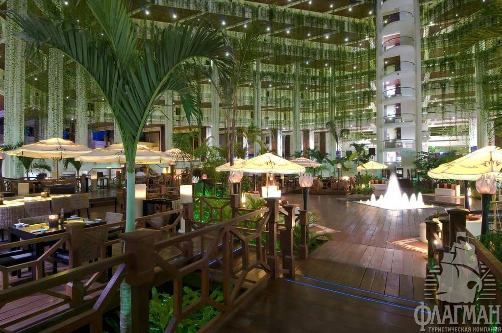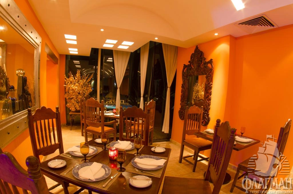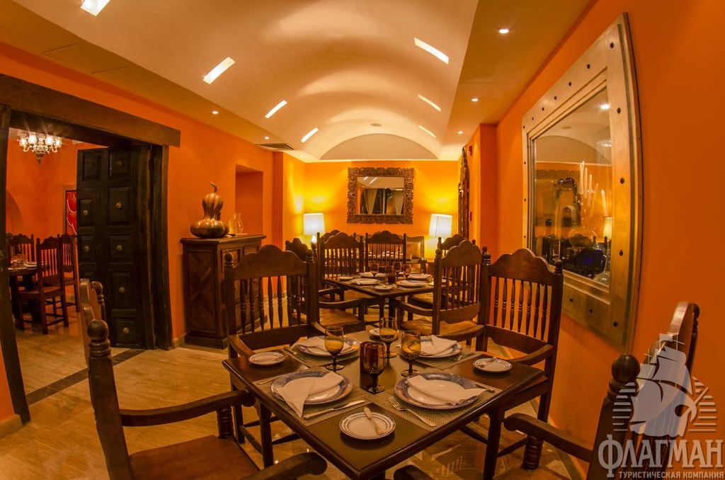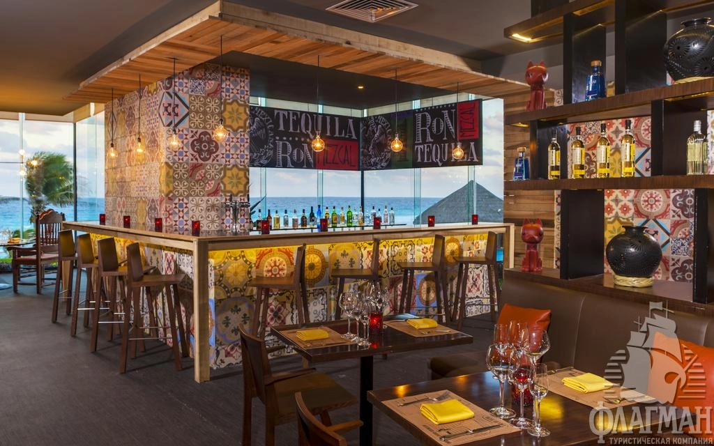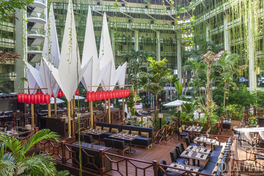 - 9 ресторанов (Naos – ресторан-буфет международной кухни; Fuego – фьюжн; Vento – итальянский; Tempo – средиземноморский, кухня от шеф-повара Mартина Берасатеги – обладателя 6 звезд Мишлен; Маrket Grill – итало-аргентинский, гриль; Bana – восточный фьюжн, Mole – современная мексиканская кухня, La Perla – морепродукты, La Polapa – эксклюзивный ресторан Royal Service)