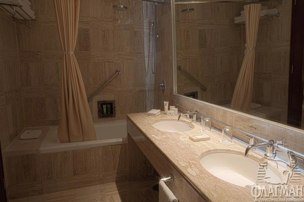 - Junior Suite Deluxe (макс. 2+2 чел., кровати 1 king / 2 queen, 45 м2, вид на море или лагуну),