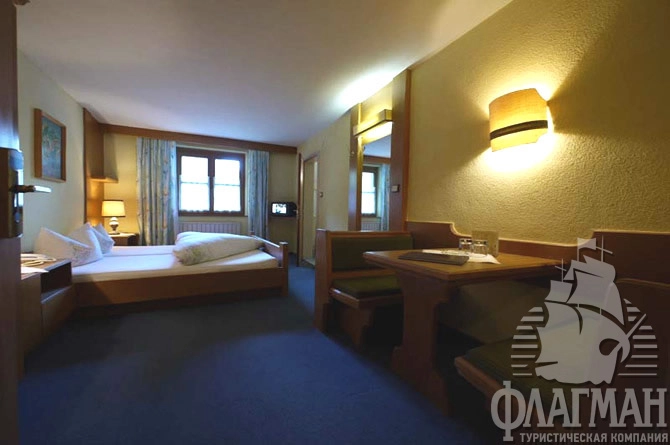 - Sonnen Suite: 45 м2, на 2–4 чел., спальня и гостиная, большой балкон с видом на горы.