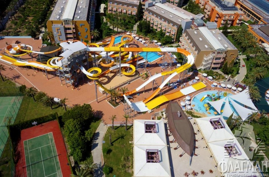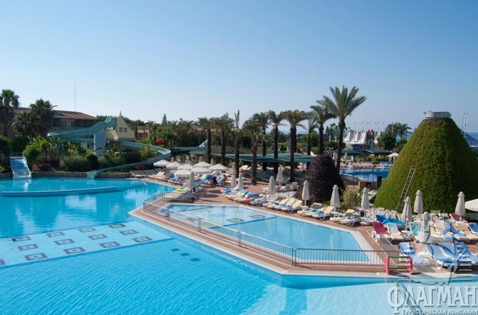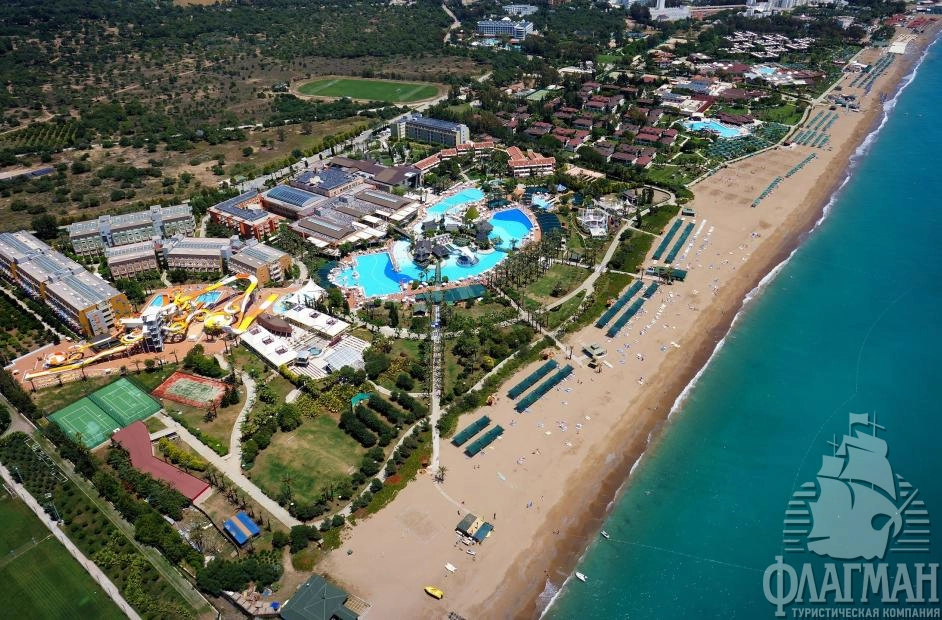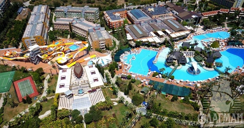 Пегасос Ворлд 5* большой жизнерадостный отель в Сиде в местечке Титреенгёль, на самом берегу моря. Гостям предлагаются помимо моря, солнца и хорошего песчаного пляжа с пологим заходом, комфортабельные номера, несколько ресторанов, гигантский бассейн, большущий аквапарк с водными горками и собственный торговый центр. Отель славится профессиональной анимационной командой, разнообразием услуг и развлечений для детей: постоянный игры и конкурсы, анимация на русском языке, игровая площадка, мини-клуб, мини-дискотека, специальное меню и детские стулья в ресторане. Рекомендуем для комфортабельного семейного отдыха с детьми.