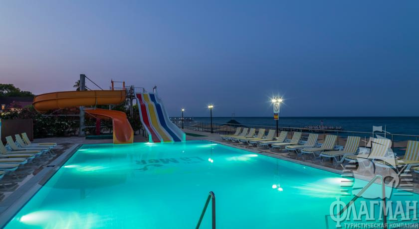 - А ля карте – ОБМАН !!! организованный г-ном Мустафой и г-жой Юлией (менеджеры по работе с отдыхающими-туристами; они же записывают на ужин в Турецкий, Итальянский и Рыбный рестораны). С момента приезда, ежедневно подходили к г-ну Мустафа с просьбой записаться на ужин в Итальянский ресторан и получали от него только обещания, уклончивые ответы типа: приходите завтра и так до дня отъезда. Когда терпение закончилось Мустафу стала “выручать” Юлия, предлагая ужин в Турецком ресторане (где в предложенном меню значатся два блюда: запеченные баклажаны и один вид рыбы – все это есть ежедневно в Главном ресторане). Предлагали с видом “только для нас”, как по-блату…Так, в Итальянский ресторан (а предлагают в отеле посетить все три), нас и НЕ ДОПУСТИЛИ.