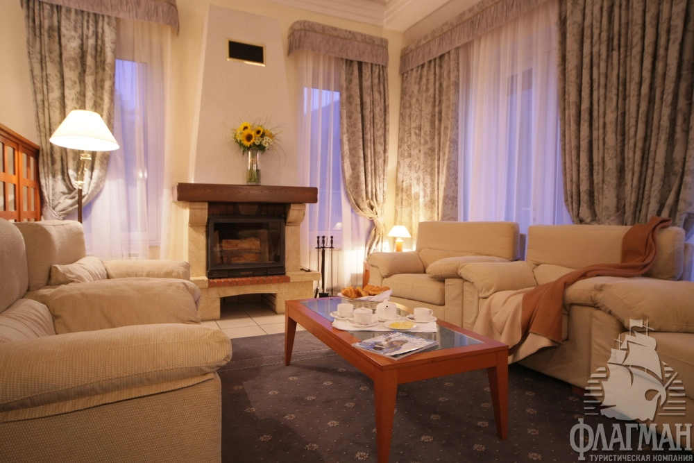 - 2-местные 2-х комнатные апартаменты двухуровневые (80 м2) – две спалени: одна – с широкой кроватью, вторая – с двумя раздельными кроватями. На первом этаже находится небольшая кухня, гостиная и санузел. На втором этаже – спальни, гидромассажная ванна, совмещенный санузел. В номере: спутниковое ТВ, мини-бар, сейф, общая система вентиляции и кондиционирования, тапочки, телефон, фен, махровые салфетки, набор принадлежностей для ванных комнат, стаканы, комплекты полотенец, халат махровый, электрическая плита, чайник, набор посуды на 4 персоны.