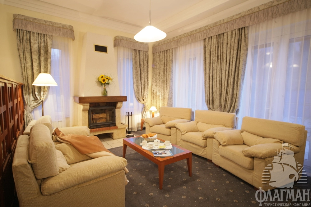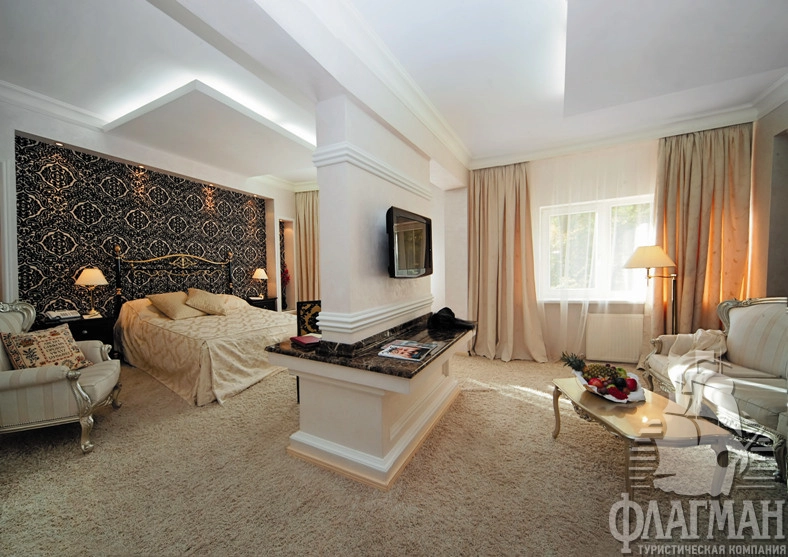 - 2-местный джуниор (44 м2) – просторные однокомнатные номера общей площадью 44 м2. Спальня с большой кроватью объединена с гостиной, обставленной мягкой мебелью, или с джакузи с зоной отдыха. В интерьере номеров используются эксклюзивные отделочные материалы и дорогой текстиль. Номера оборудованы ванной или душевой кабиной. В номере: спутниковое ТВ, мини-бар, сейф, общая система вентиляции и кондиционирования, тапочки, телефон, фен, махровые салфетки, набор принадлежностей для ванных комнат, стаканы, комплекты полотенец, халат махровый.