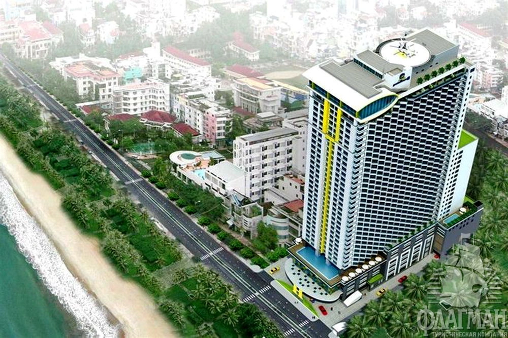 Расположен в цетре города Нячанг, на берегу моря, через дорогу от пляжа (25 м, есть подземный переход), в 37 км от аэропорта Камрань/Cam Ranh (45 мин езды).