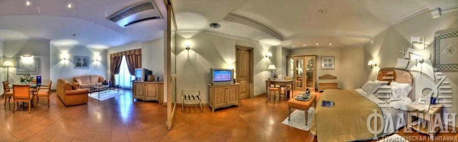 - 1 Suite Baldacchino (двухкомнатный номер: большая гостиная с диваном и спальня, 2 ванных комнаты, вид на сад, балкон, эксклюзивная мебель, макс.2+2 чел., 70 м2)