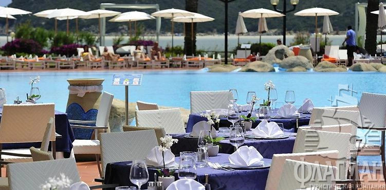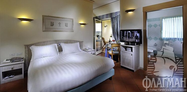 - рестораны: 3 (I Ginepri - обед, ужин a la carte – за доплату, Il Mediterraneo - обед – за доплату, La Veranda - завтрак и ужин – по формуле проживания НВ)