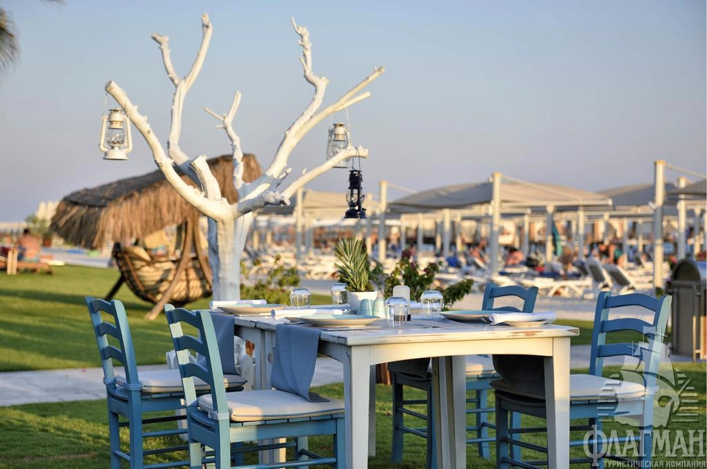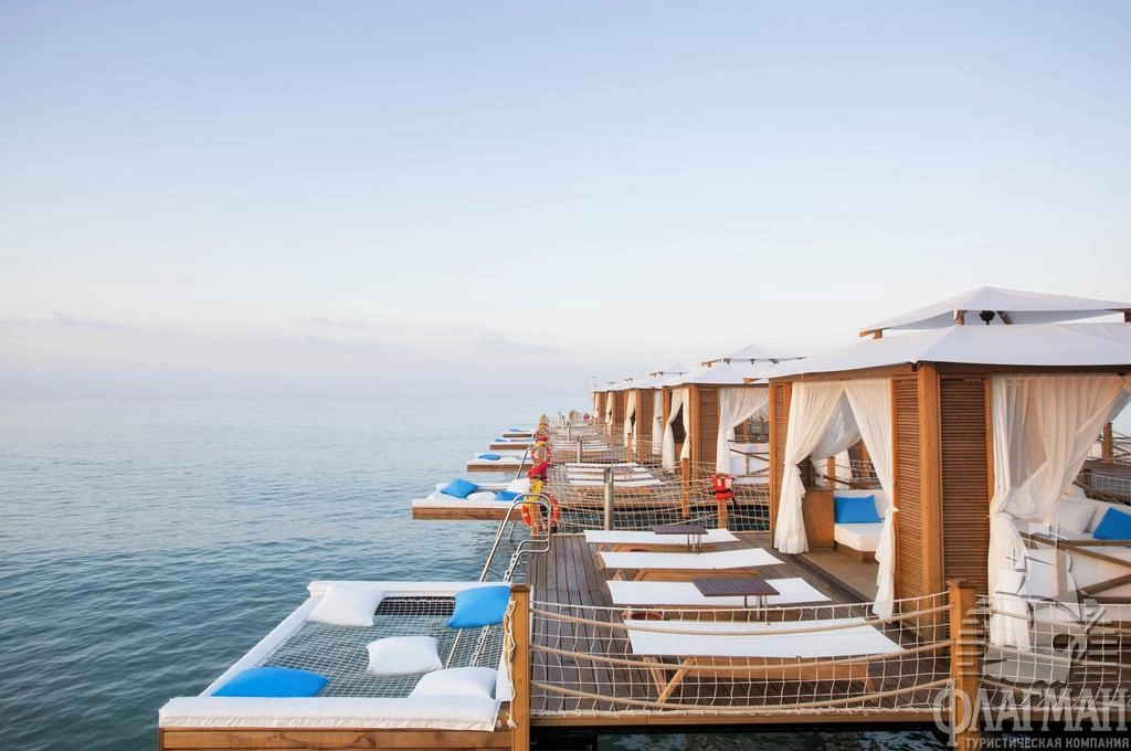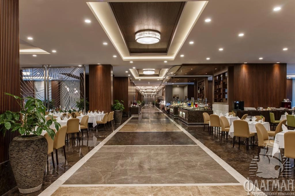- рестораны a la carte: 6 (турецкий, итальянский, азиатский, рыбный, бразильский стейк-ресторан, рыбный ресторан на берегу моря – по предварительной записи, платно)