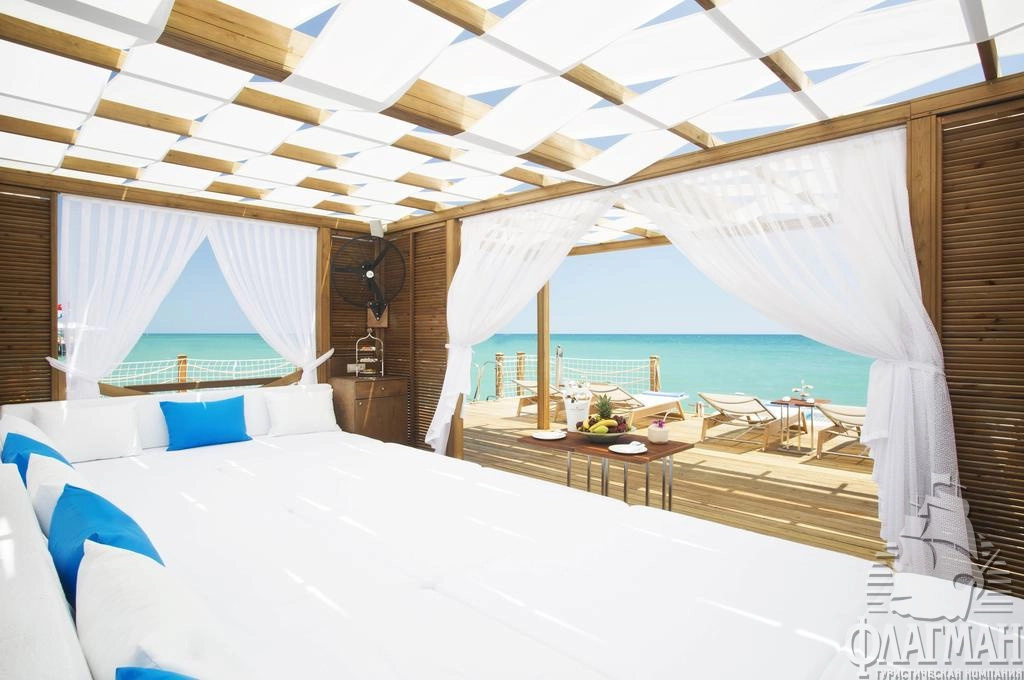 - шатры на пляже платно (и на пирсе (для Crown Villa, Carya Golf Villa – бесплатно)