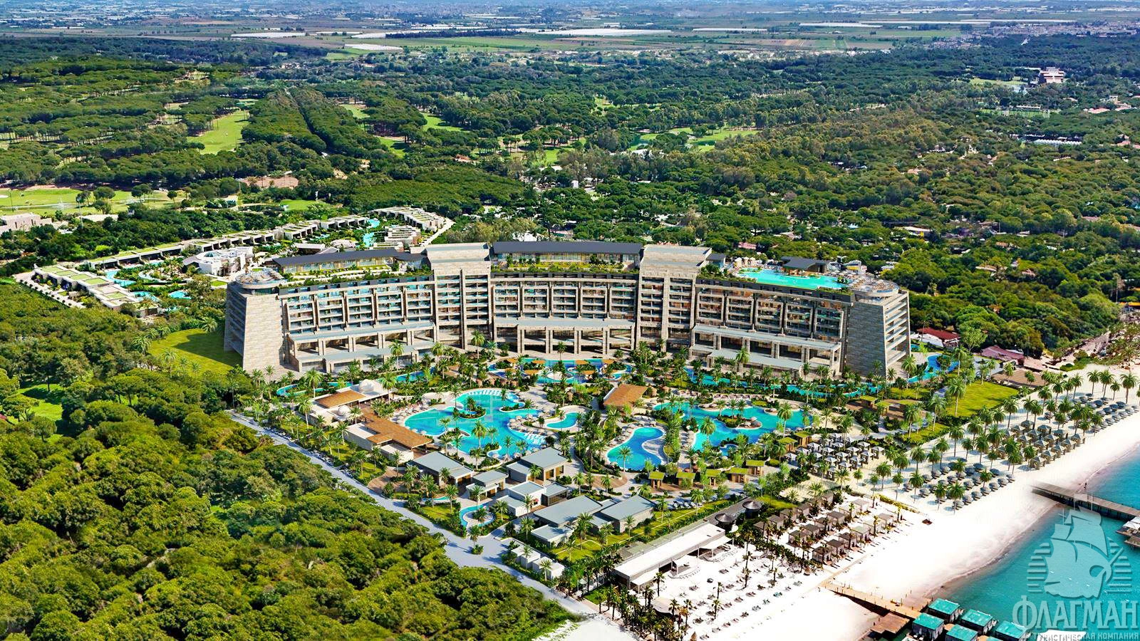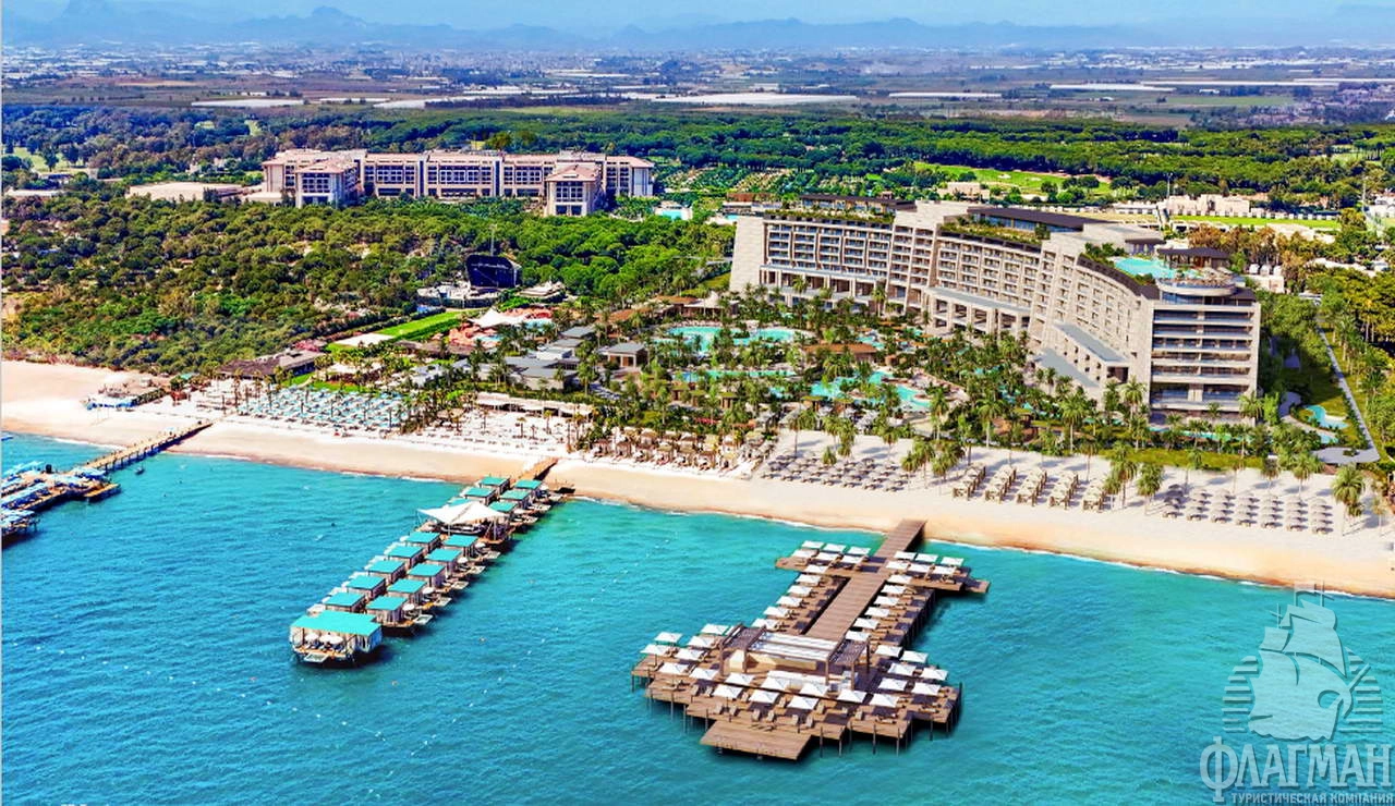 Расположен в Белеке на первой линии у моря на песчаном плаже, в 30 км от аэропорта Антальи, в 500 м от гольф-клуба Carya Golf Club, в 3,5 км от гольф-клуба National Golf Club, в 2 км от парка развлечений The Land of Legends Theme Park.