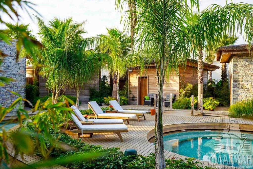 - Amber lagoon suite (97 м²) расположены в зоне Лагун: терраса 55 м² с выходом к бассейну, общему на несколько номеров, и обеденной зоной на открытом воздухе, гостиная зона (может быть отделена от спальни шторой), спальня с кроватью king-size и ванной, гардеробная, ванная комната с душевой кабиной. Дополнительно: гамак над бассейном.