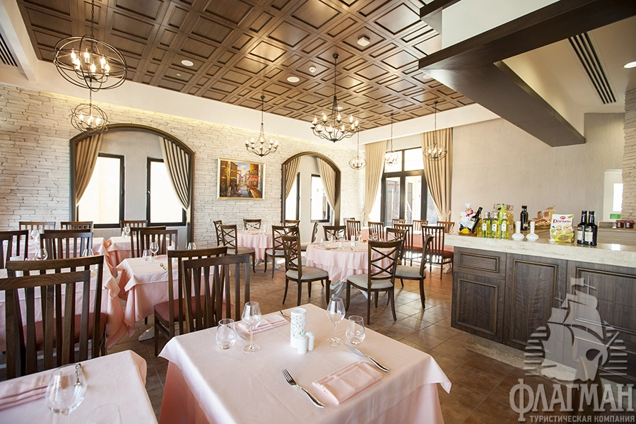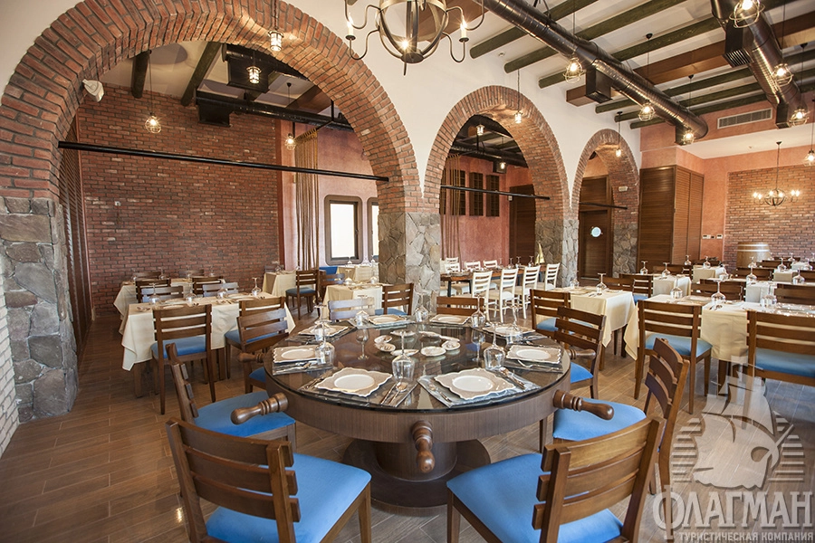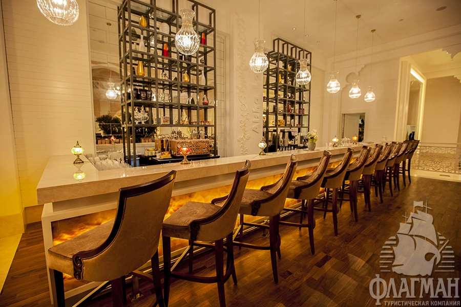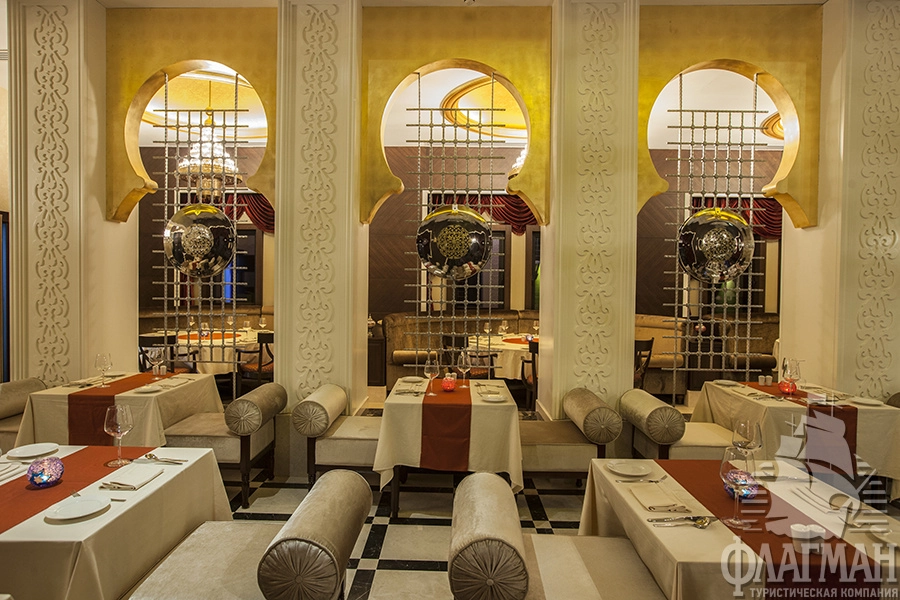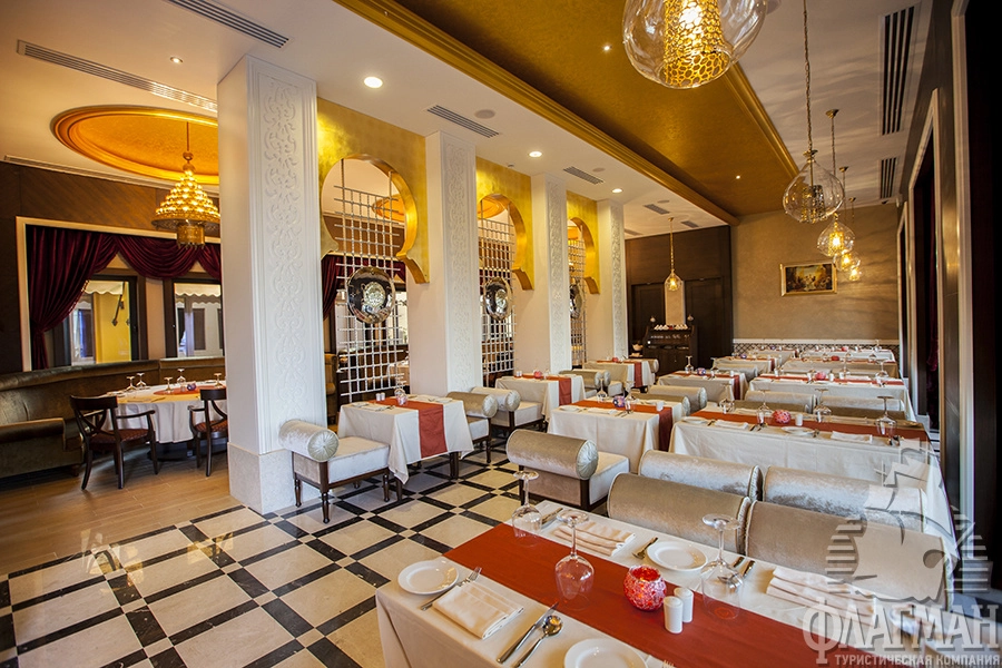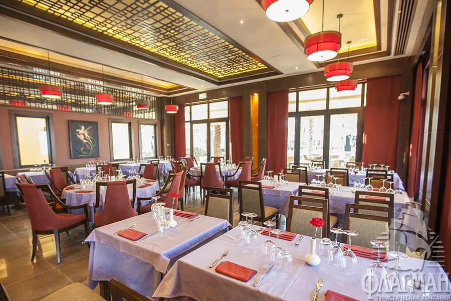 - рестораны a la carte: 5 (необходимо предварительное бронирование, бесплатно: азиатский Aja, итальянский L’Olivo, турецкий Lalezar; платно: Fish Bone – блюда из морепродуктов, Meat Point – мясные блюда)