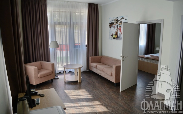- 24 Family (Семейный) (50 м2, макс. 3 взрослых или 2+2 ребенок) Двухкомнатный номер состоит из спальни и гостиной. В Номере так же есть холодильник и чайник.