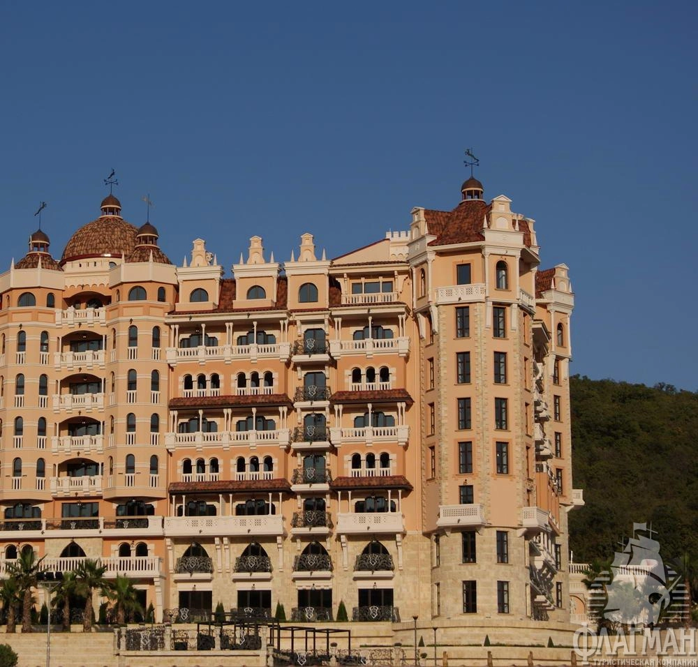 Гостиница представляет собой одно 9-этажное здание, выполненное в стиле позднего средневековья.