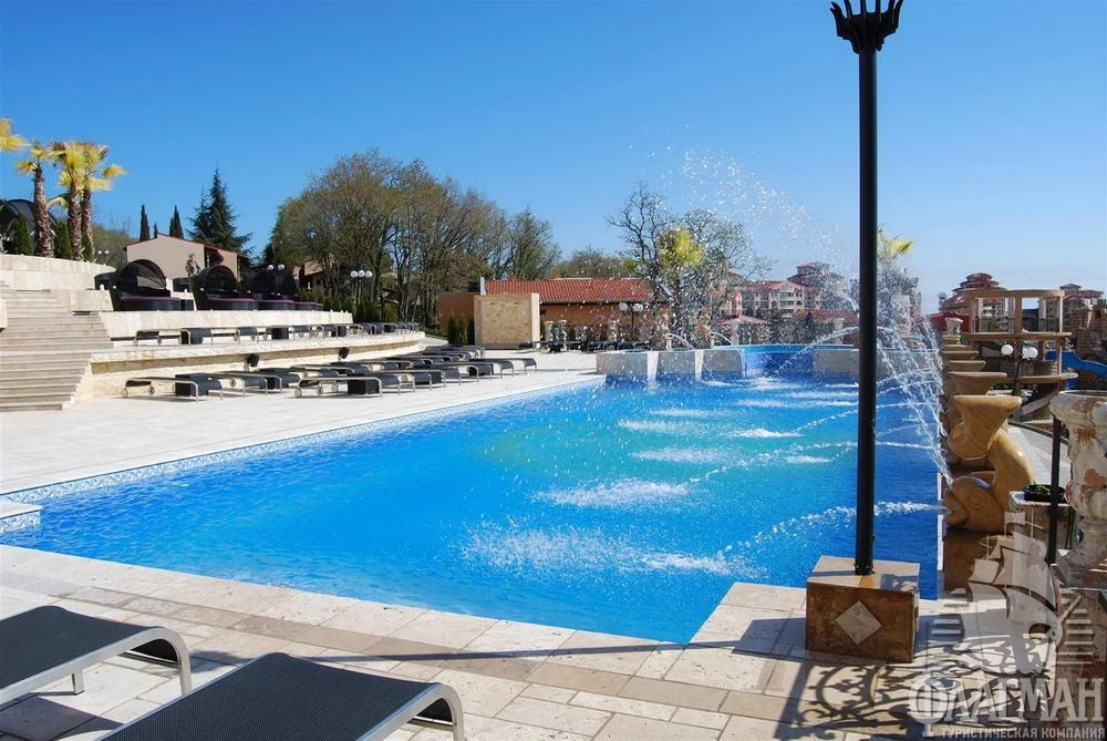 В курортном комплексе Елените, в 40 км от аэропорта города Бургас, в 12 км от курорта Солнечный Берег, в 250 м от моря.